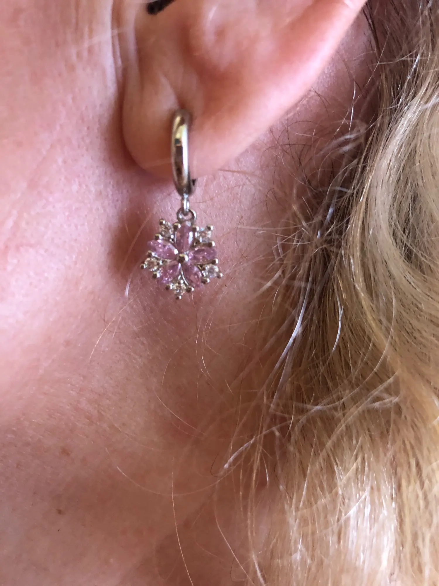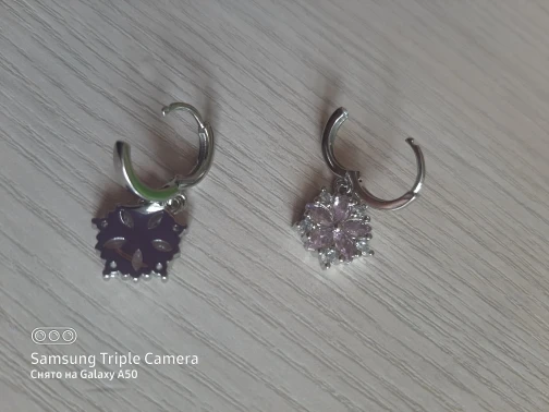The earrings are exactly as in the picture. It has a stamp for fastening. Very good fastening. Everything is alright. The shipment arrived in a security envelope. They are beautiful and you can sleep in them. They arrived early, which I'm glad. I have bought from the seller before and everything is fine so far. I recommend.