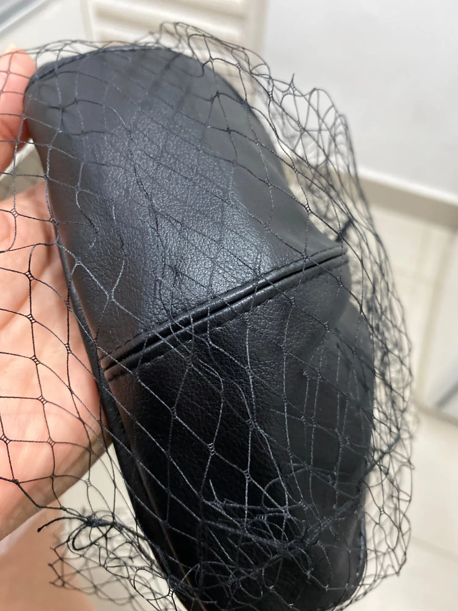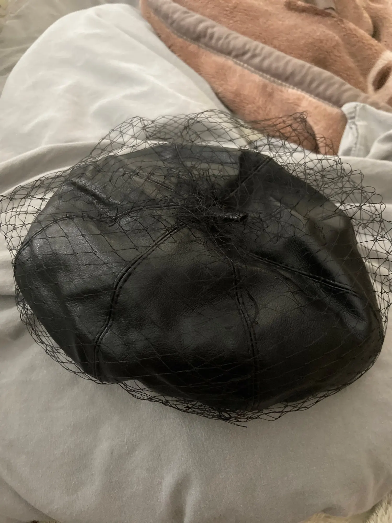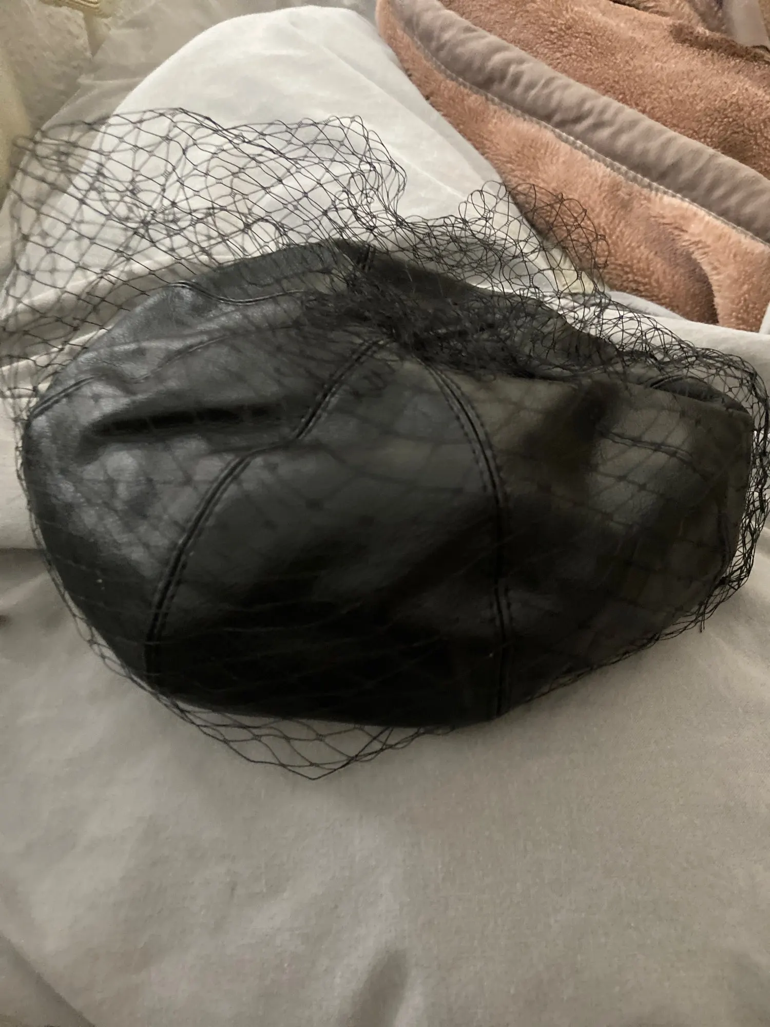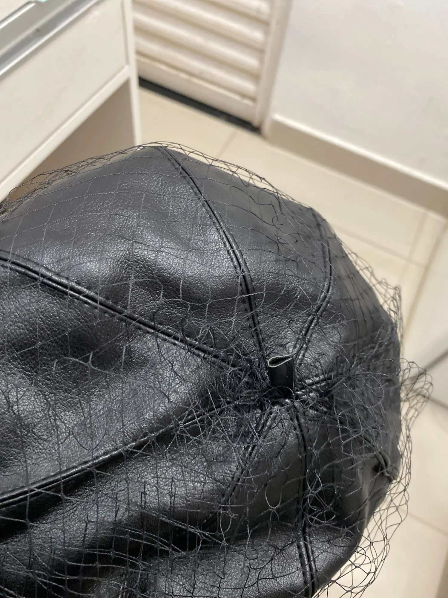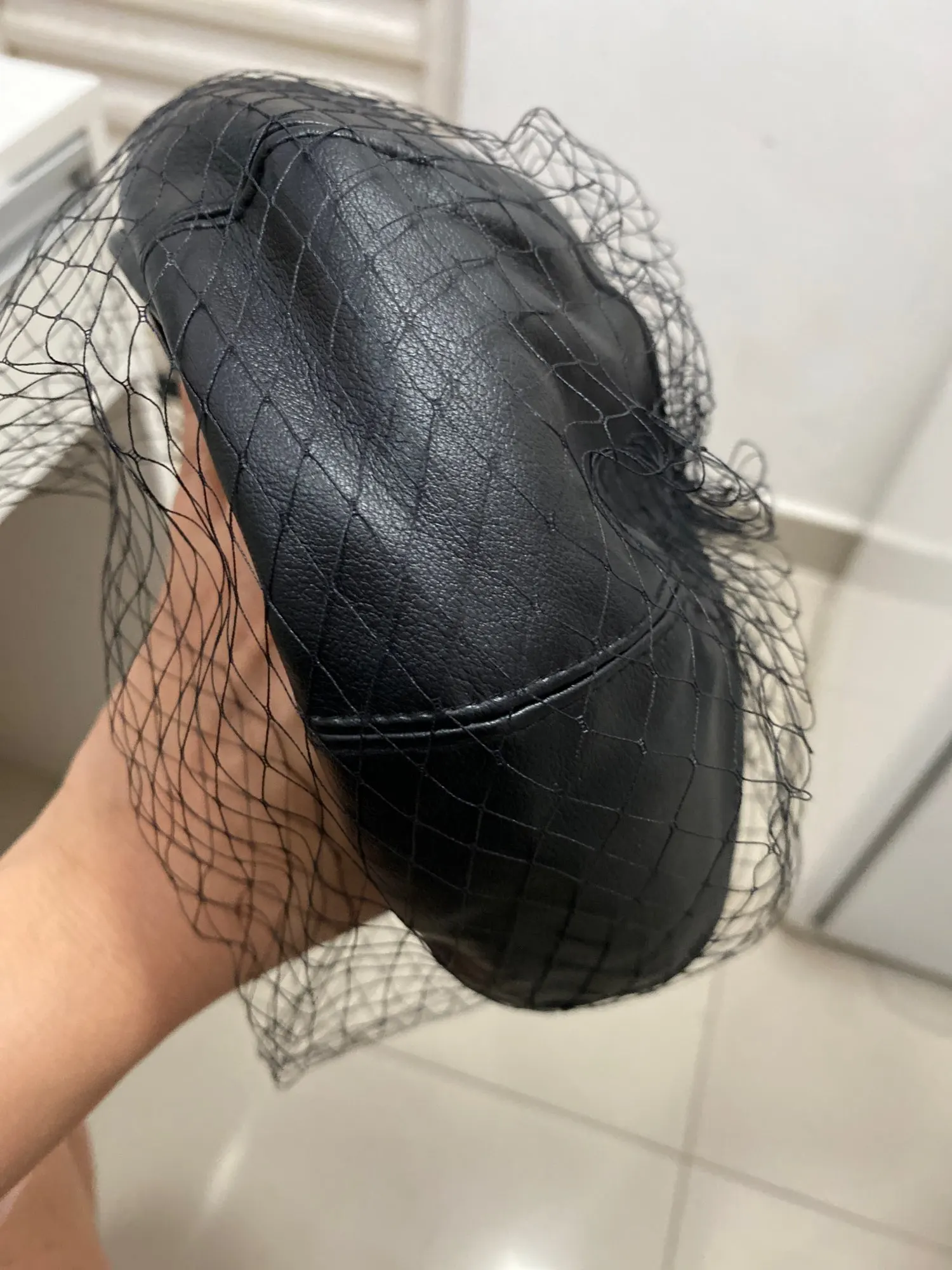Fascinating Black Hat Chic Leather French Beret With Veil Mesh Show Double Layer Women Beret Beanies Cap