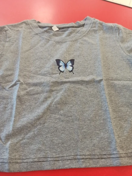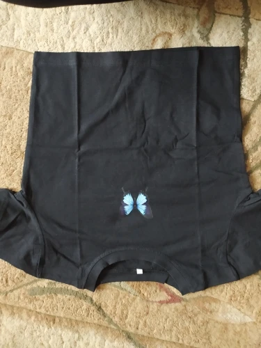 Fashion Cartoon Blue Butterfly Print Crop Top Harajuku O Neck Cropped T Shirt Cute Women T-shirt Gothic Women Tshirt Streetwear