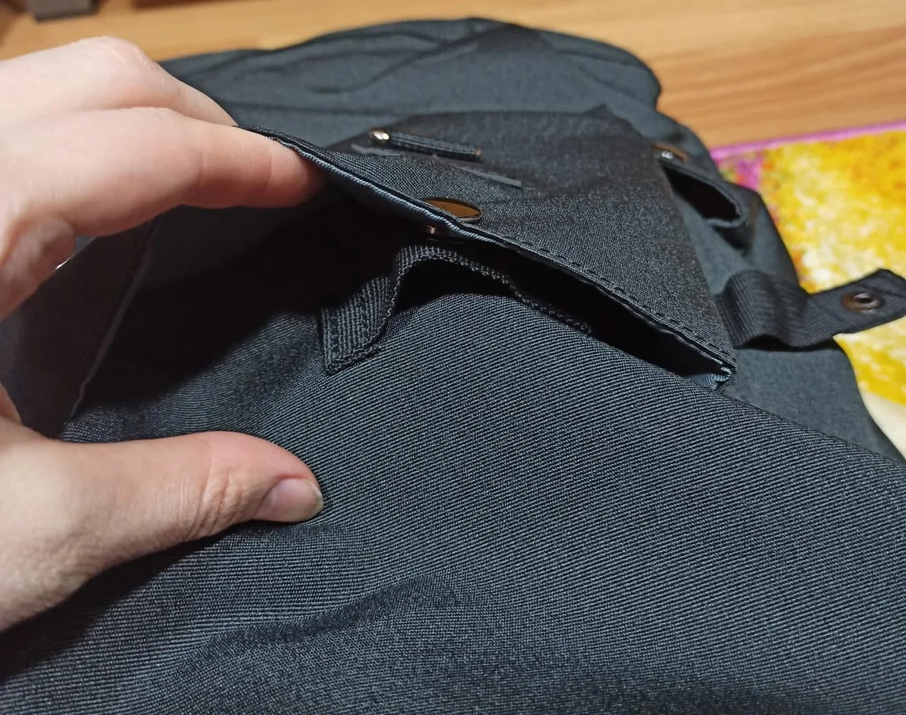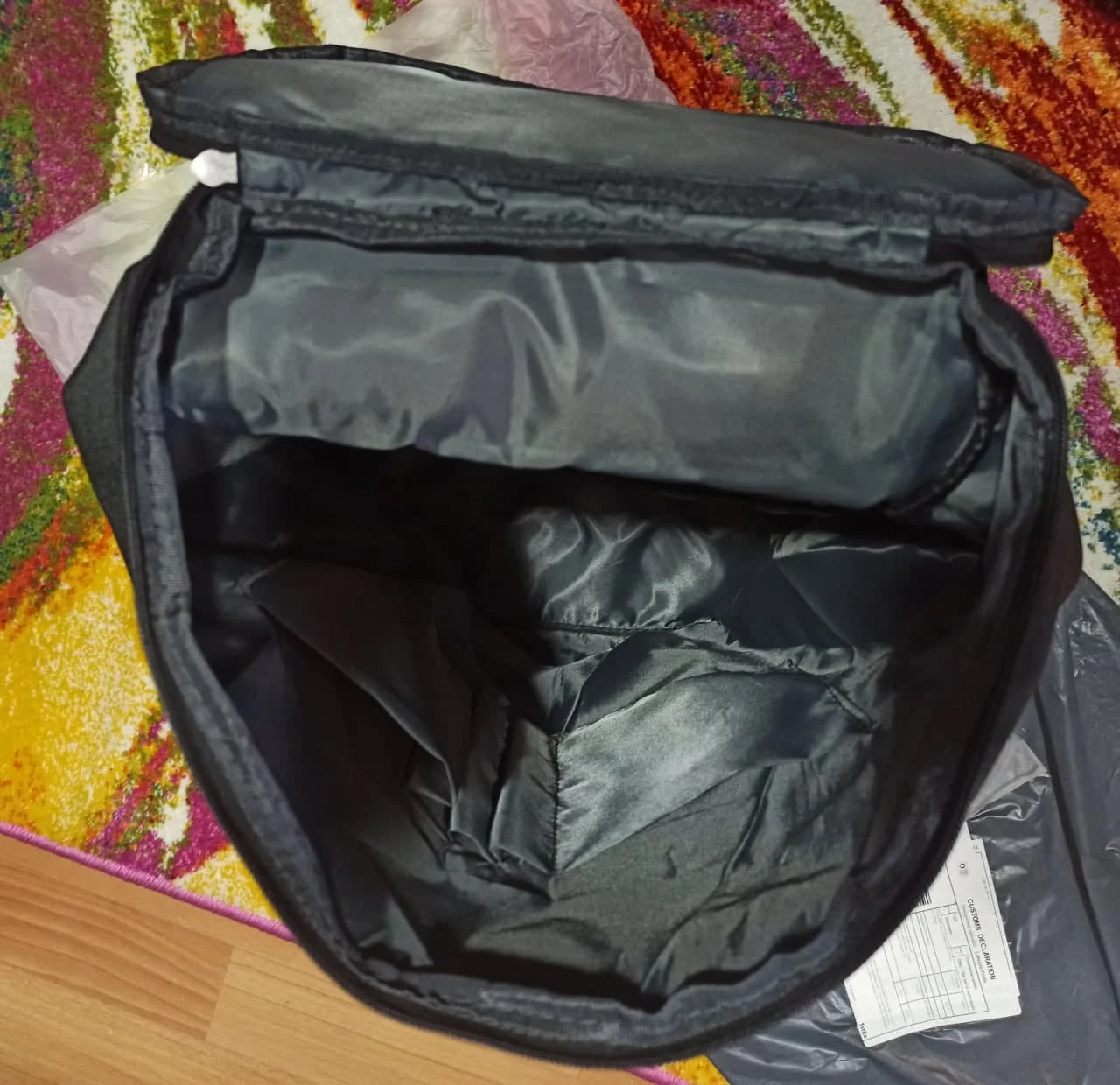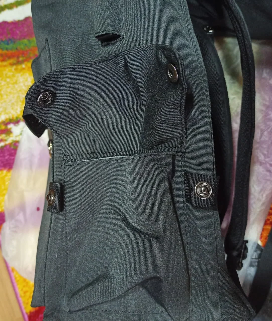 High quality material, resistant, many pockets. the two of front are a bit small, but its not a problem. the smaller bag is very good too, just a little garish with a big stamp. but 100% satisfied