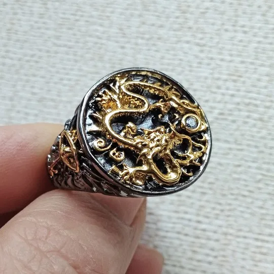 Fashion men Gold Black Ring Gold Dragon With Stone Ball Male Ring Vintage Punk Finger Ring Jewelry For Men best gift