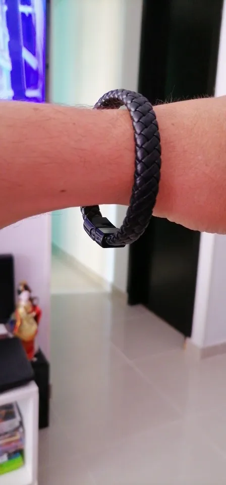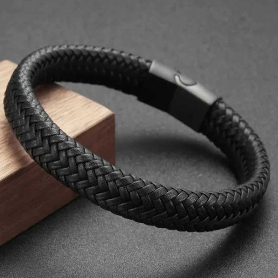 Fashion Men Jewelry Handmade Braided Leather Bracelet Black Stainless Steel Magnetic Clasps Men Wrist Band Gifts