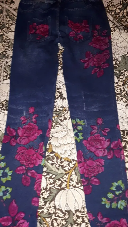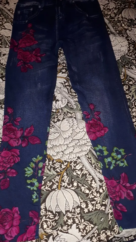 Fashion Slim Women Spring Summer Leggings Faux Denim Jeans Leggings Long Floral Printing Casual Pencil Pants Thin Fleece Inside