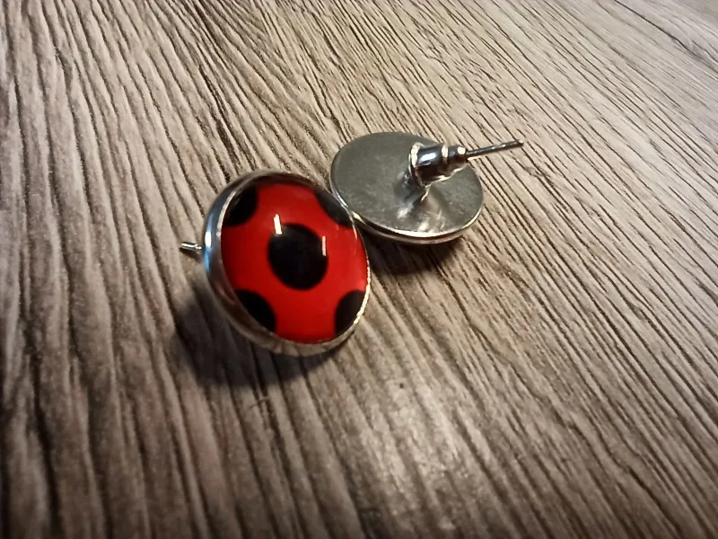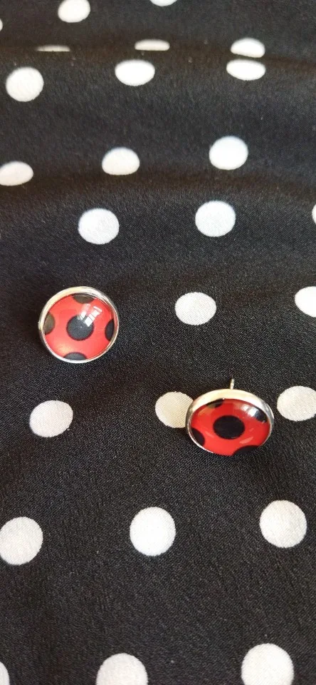Fashion Women Ladybug Anime Cartoon Style Stainless Steel Plated Earrings Jewelry Cartoon Glass Dome Stud Earrings Gifts