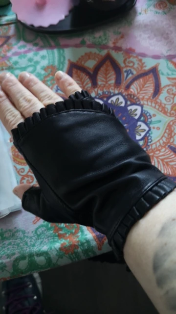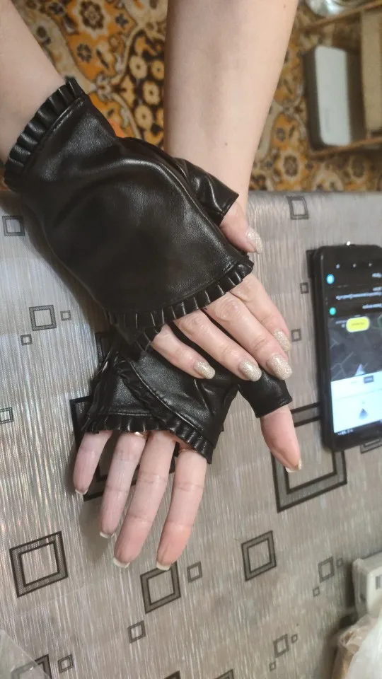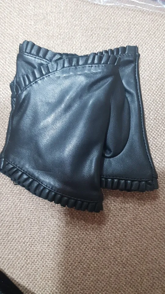 female Fingerless leather gloves wrinkled lace style semi pointed sheepskin gloves sports ride driving