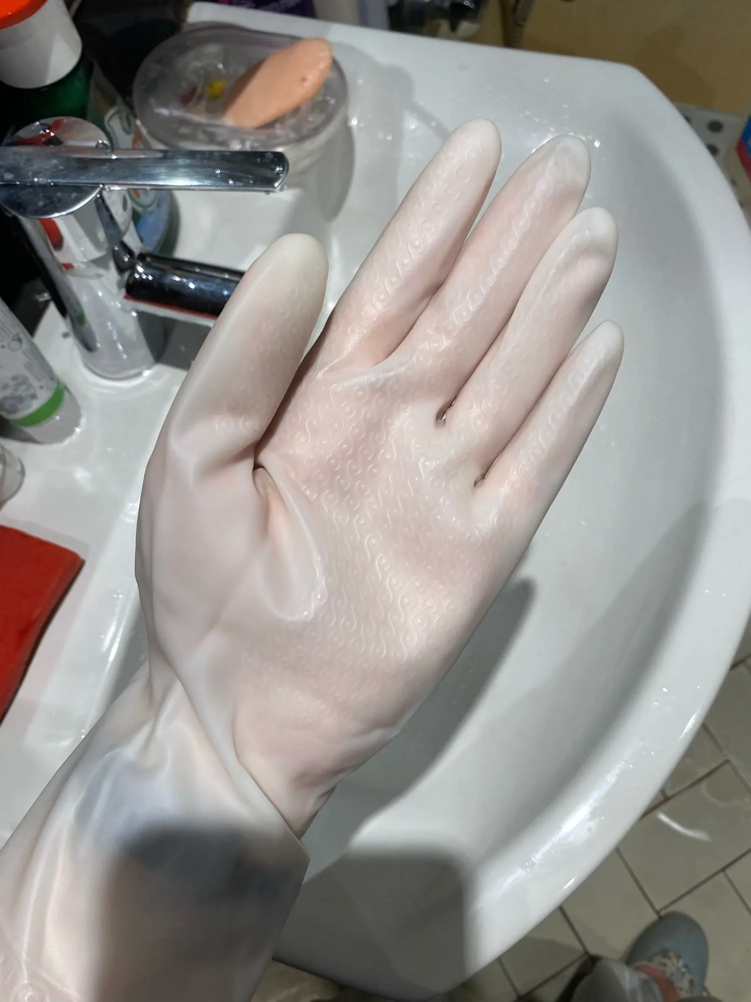 Just like the picture!!! Very happy with these waterproof rubber latex gloves! thank u!