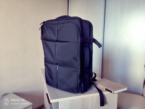 Рюкзак соответствует описанию. Достаточно жесткий, держит форму хорошо. Ткань плотная и прочная. Дефектов никаких не заметил. Больше подходит для путешествий не для повседневного использования. The backpack corresponds with seller's description. The backpack keeps its shape well. The fabric is strong and dense. I haven't noticed any defects. This one is suitable for trip but not for daily using.