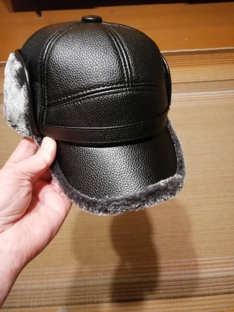 Fibonacci 2022 New Classic men's winter hat warm ear protection plus velvet thick middle aged elderly leather baseball cap