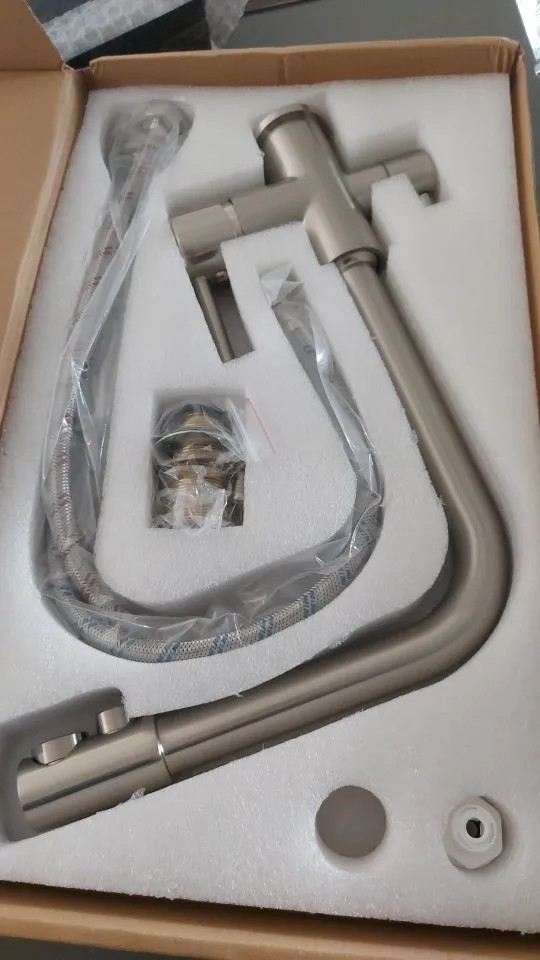 Was delivered not extremely fast but pretty fast. Packed very well. Just installed so I can't say anything about construction quality and reliability but I'm completely satisfied with the design. For now all works just fine. Only two things I'm worried about are that the turning mechanism is super tight, it requires really much efforts to rotate the faucet, for now I'm doing this with both hands afraid to shatter the attachment to the table. And the second concern is about the attachment groove - it's very thin and is not covered with the metal dust from the inner side.