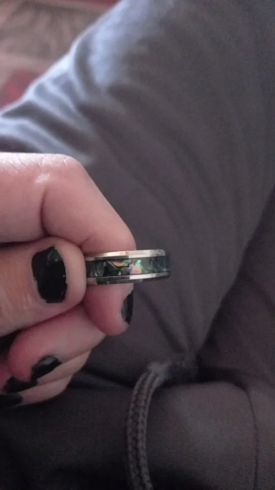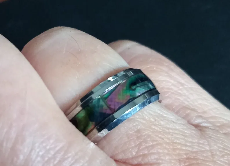 Fine jewelry 8 Mm inlaid Abalone Shell beveled steel Tungsten Carbide Ring Wedding jewelry Valentine gift