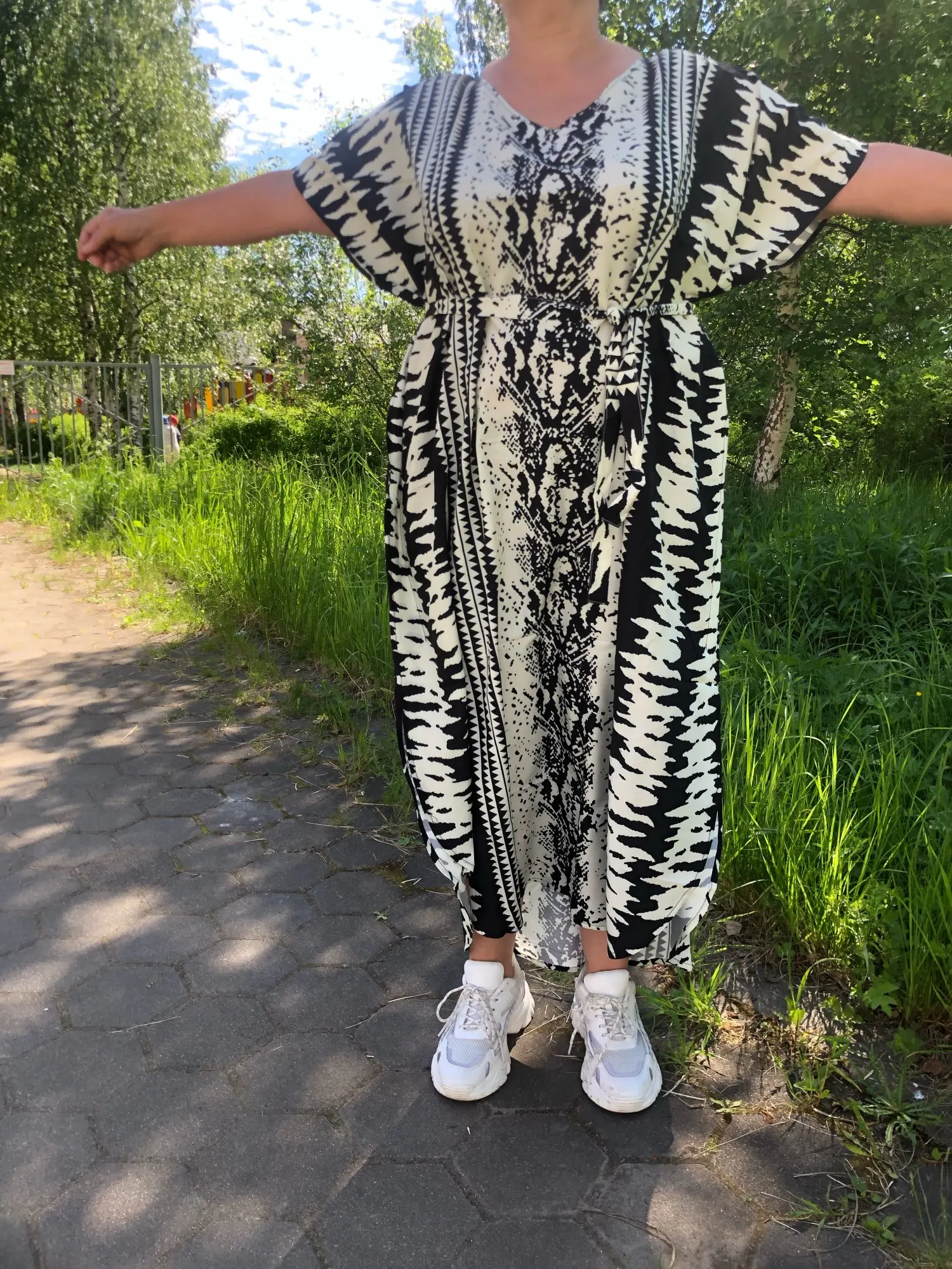 Fitshinling Bohemian Vintage Oversized Dress Women High Split Sexy Maxi Dresses Beach Cover Up Sashes Holiday Serpentine Kaftan