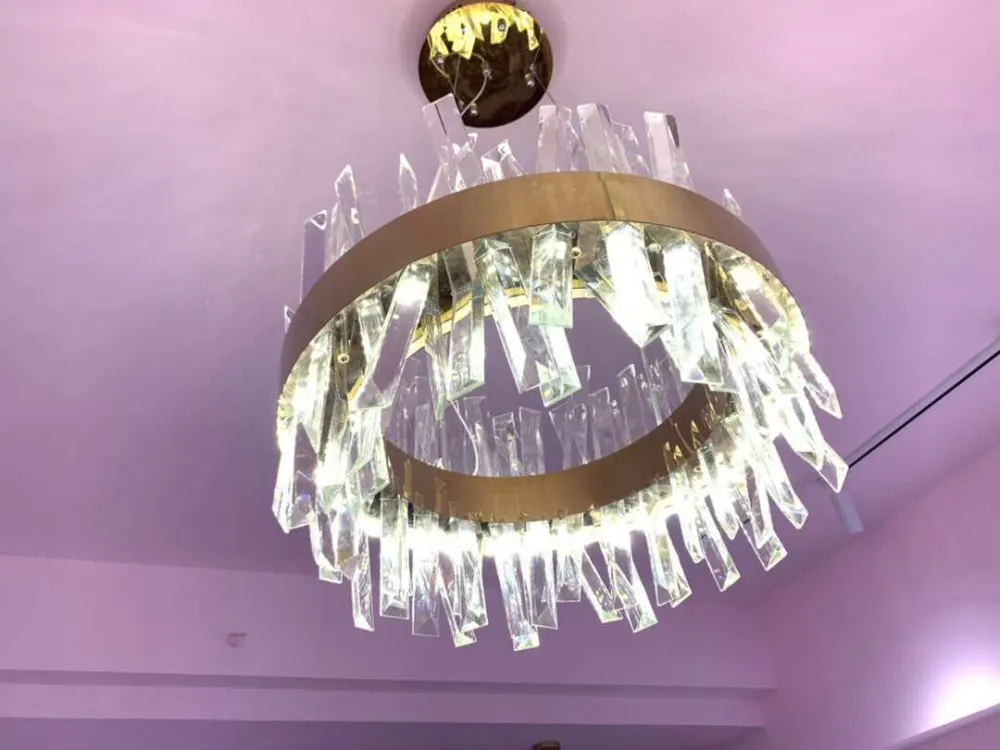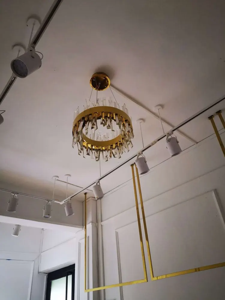 FKL Modern Round Crystal Chandelier For Dining Room Rectangle Design Kitchen Island Lighting Fixtures Chrome LED Cristal Lustre