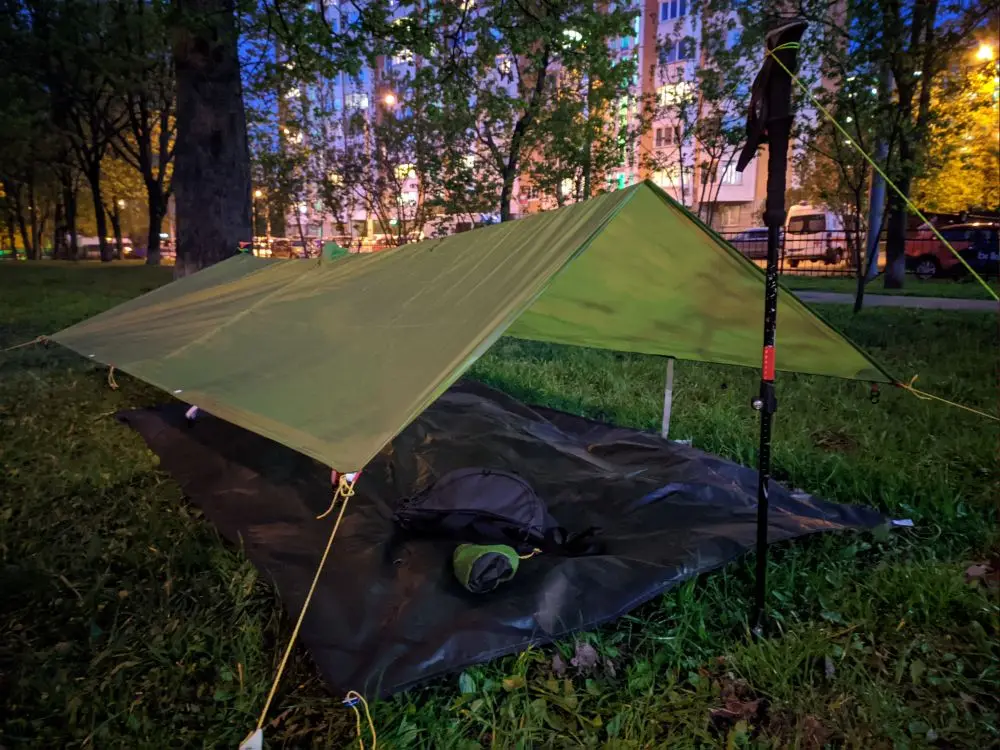 FLAME'S CREED 223G Single Person Ultralight Hiking Cycling Raincoat Outdoor Awning Camping Tarp Sun Shelter 15D Silicone Green