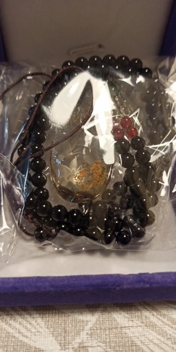 A pretty pendant on a long beaded necklace. Very similar to photo. Thirteen weeks from order to delivery.