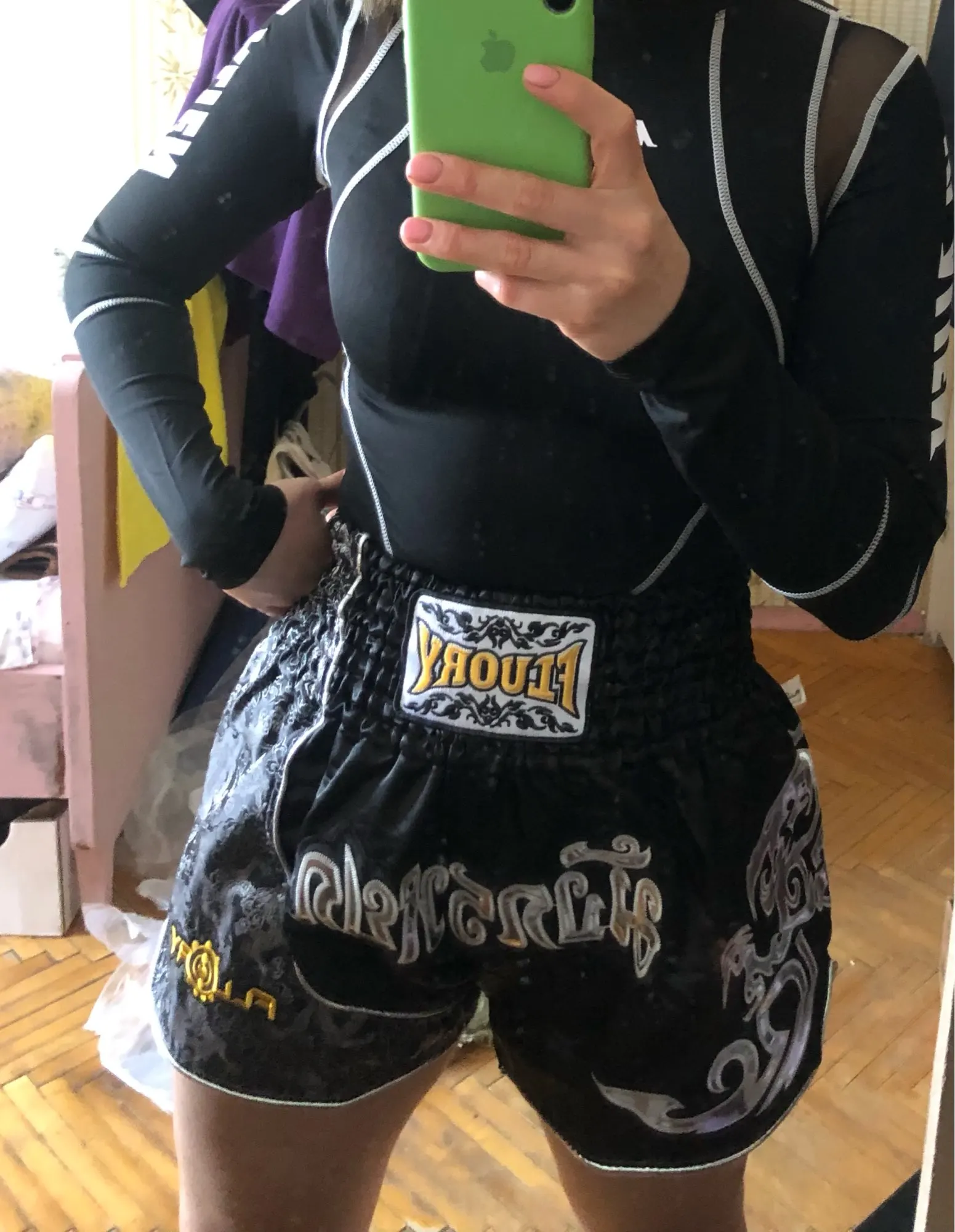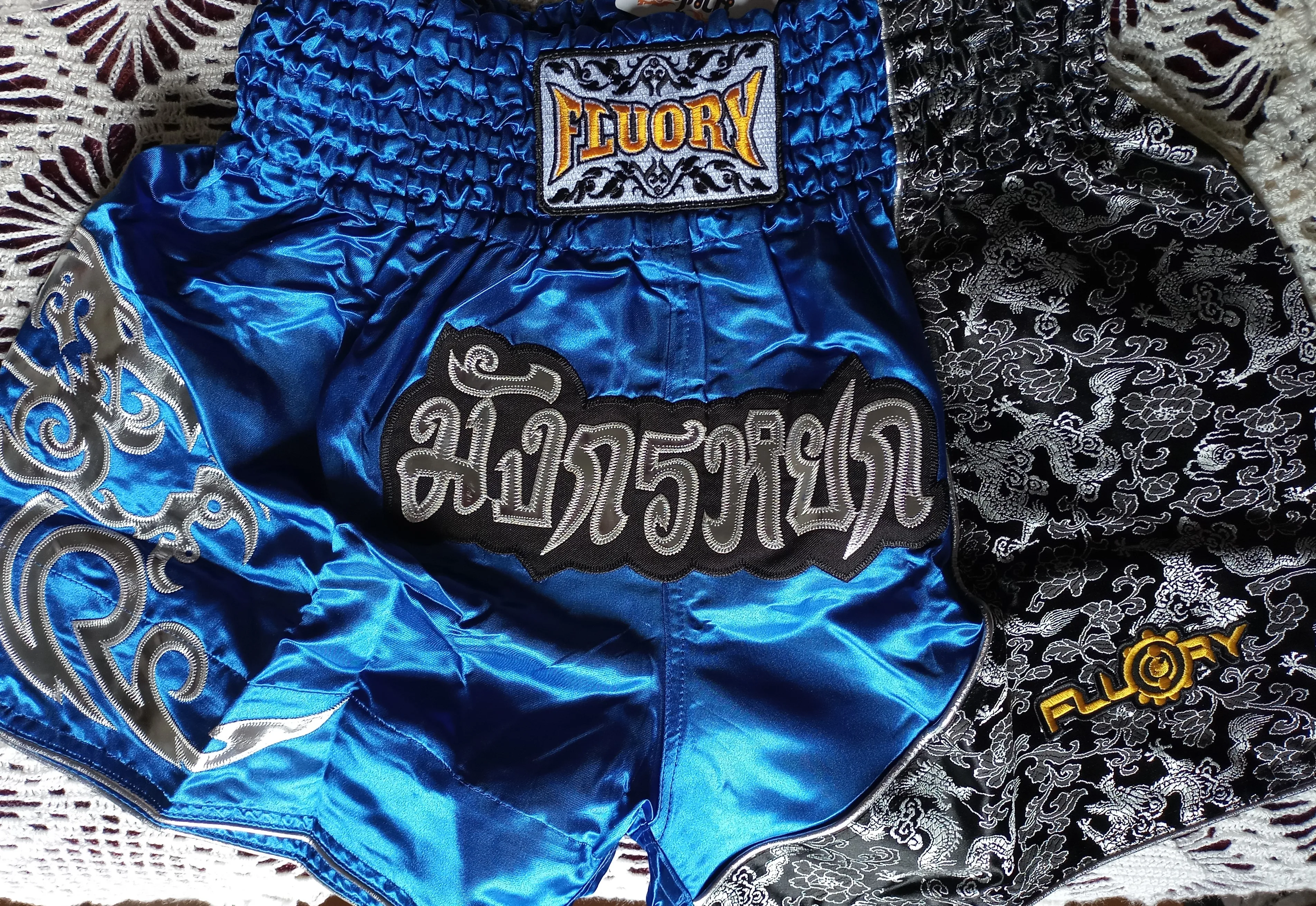 Fluory printing Fight shorts Boxing Shorts embroidery patches Muay thai shorts