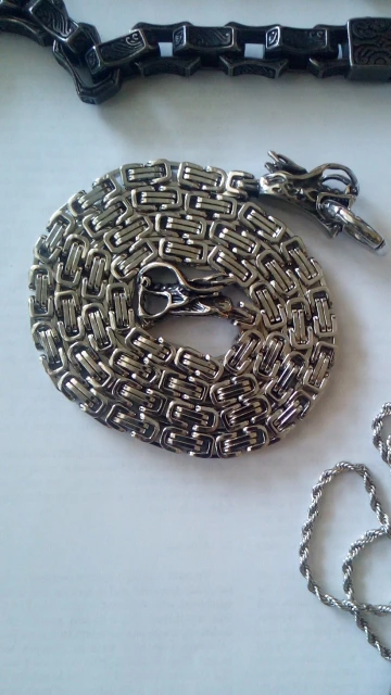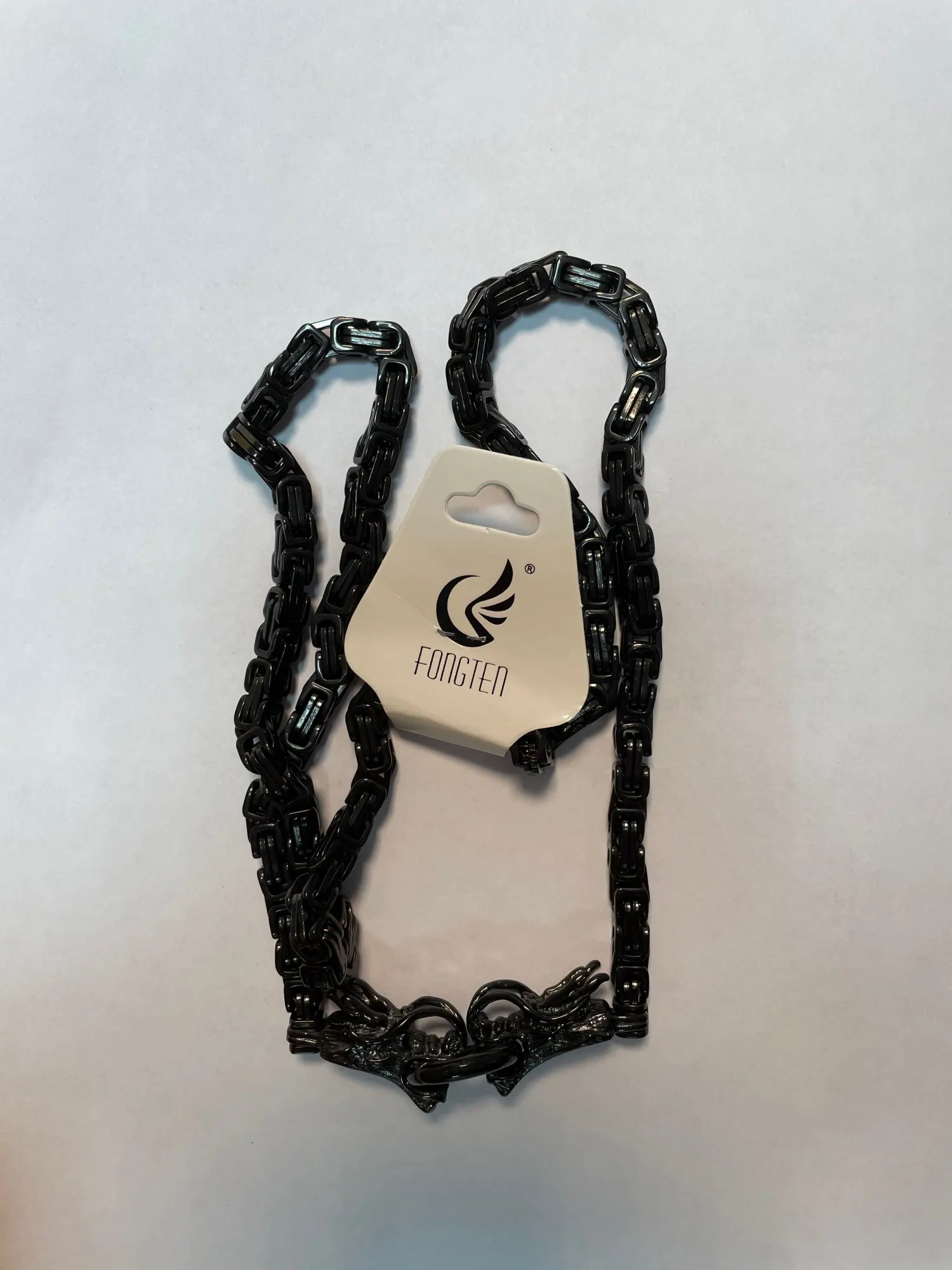 Fongten Dragon Head Charm Pendant Necklace Punk Stainless Steel Curb Square Link Chain Long Necklaces Men Fashion Jewelry