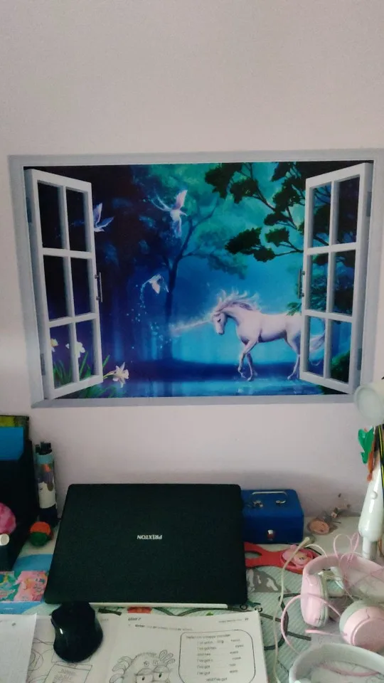 Forest unicorn wall sticker for kids room horse head nursery bedroom living room decor 3d effect wall decals murals art gift