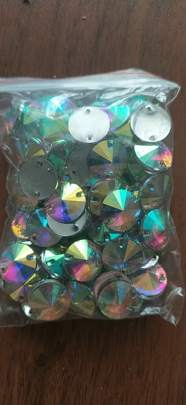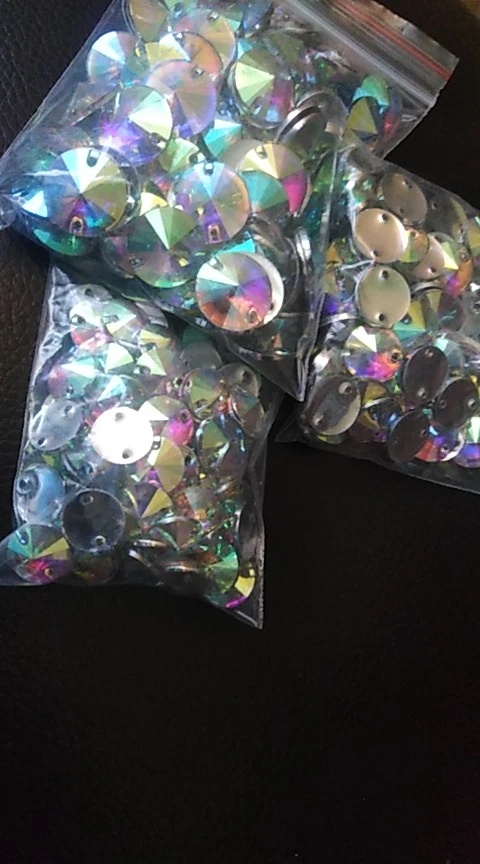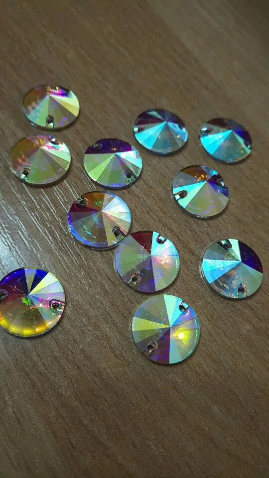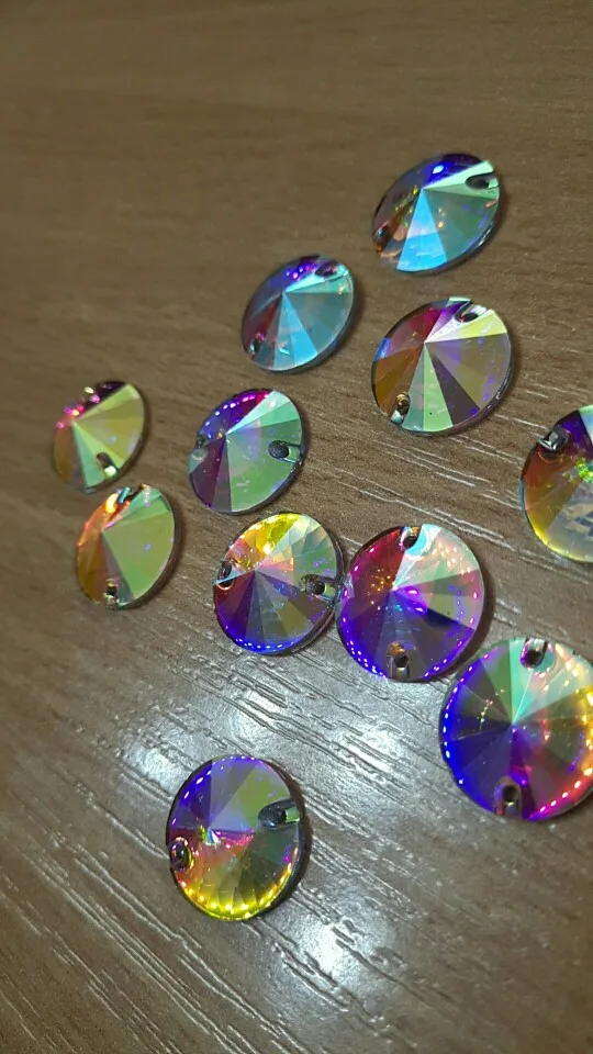 Free Shipping, 100pcs/Lot, 14mm Crystal AB / Clear AB Flat Back #3200 Rivoli Round Resin Sew On Stones