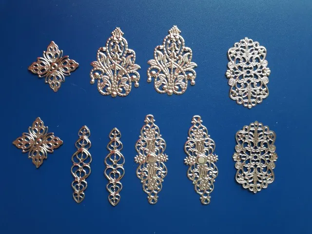 Free shipping 10Pcs Mixed Bronze Tone Filigree Wraps Connectors Metal Crafts Gift Decoration DIY 25x25mm-61x24mm