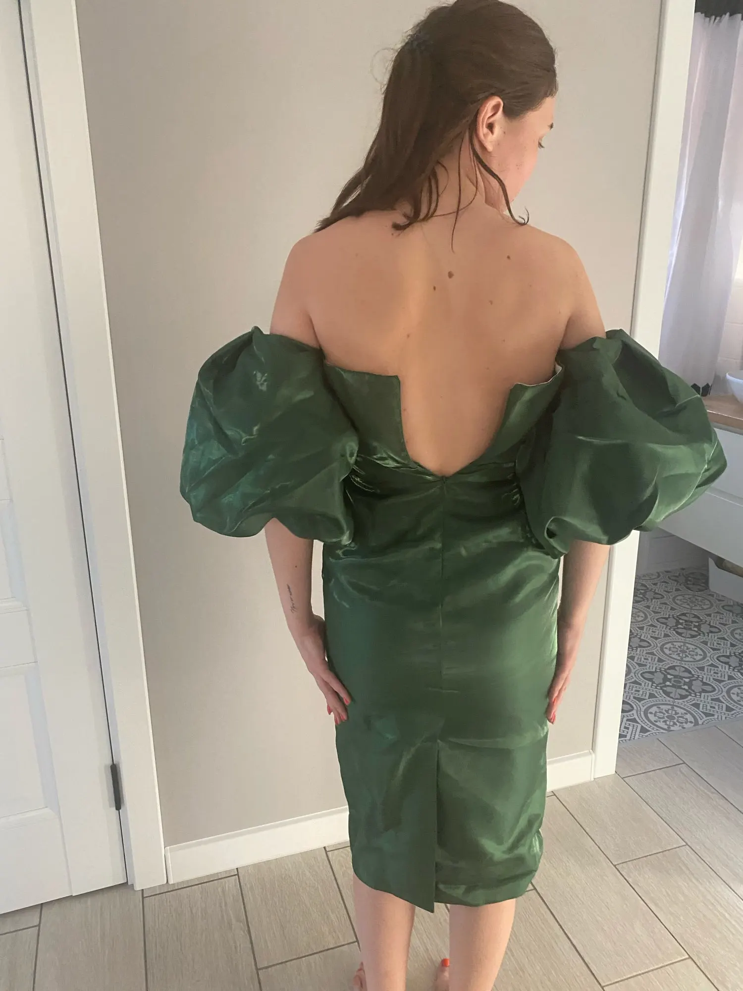 Free Shipping 2022 New Chic Puff Sleeves Design Sexy Off Shoulder Backless Celebrity Evening Party Club Midi Dress Vestidos