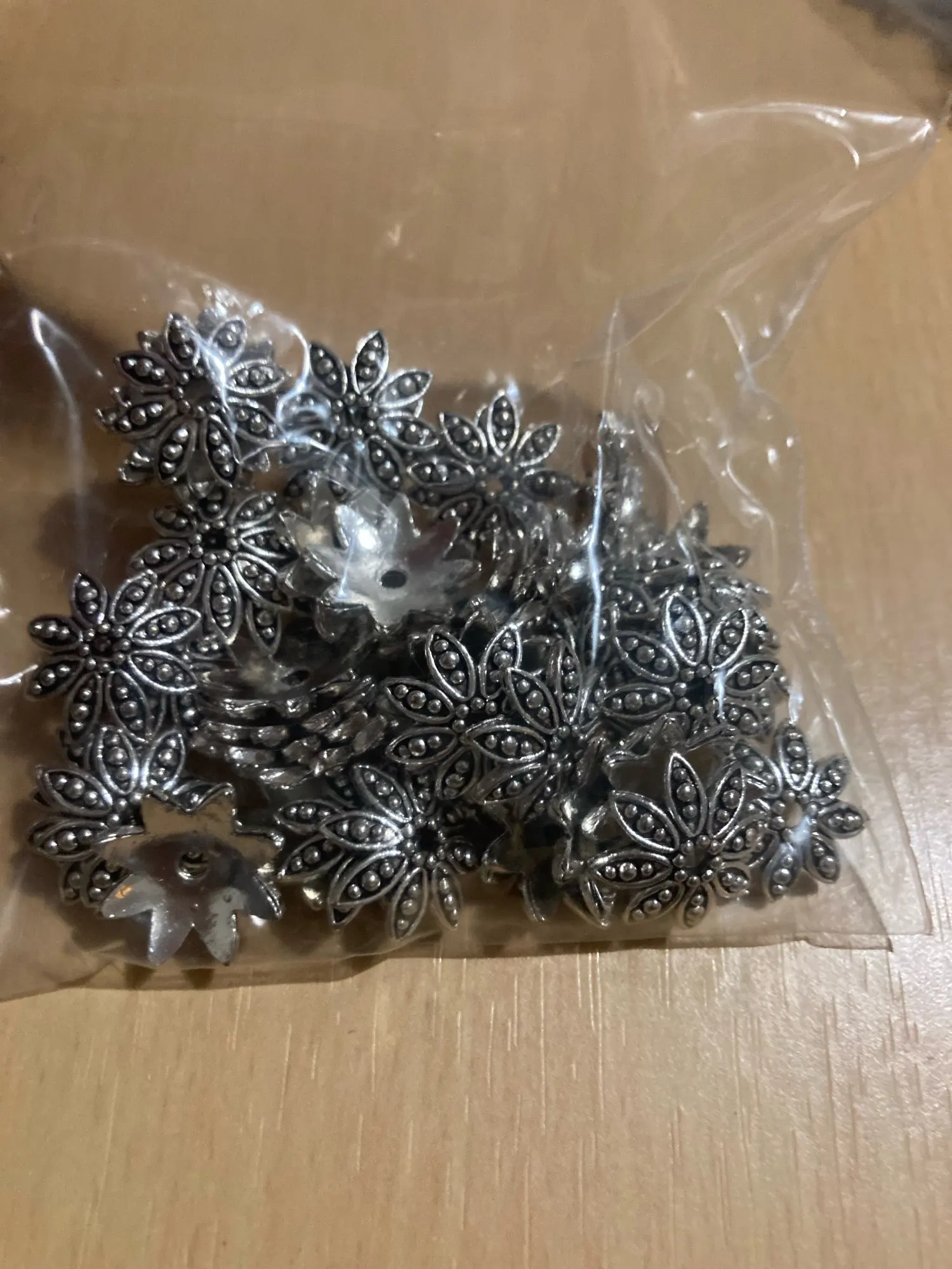 Free Shipping 50Pcs / Lot European Zinc Alloy Antique Silver Bead Caps for Bracelet Making EC4
