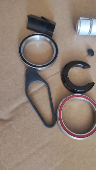 This headset and compression device combo offers great headset and compression function with a secure headset functionality and fork secured in place with a tight fit. Bearings looking good. Overall this is a smooth experience and it's always good to have a fresh headset mounted. Nothing to complain.