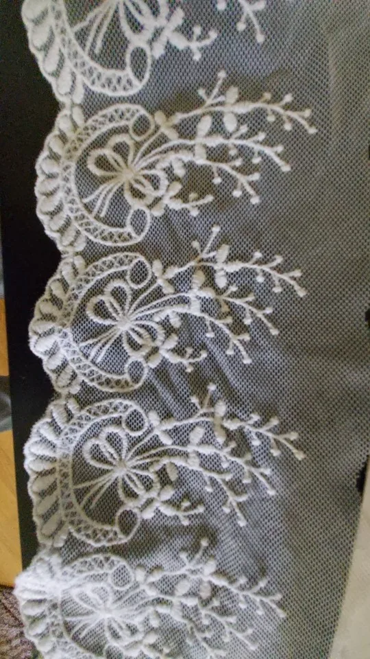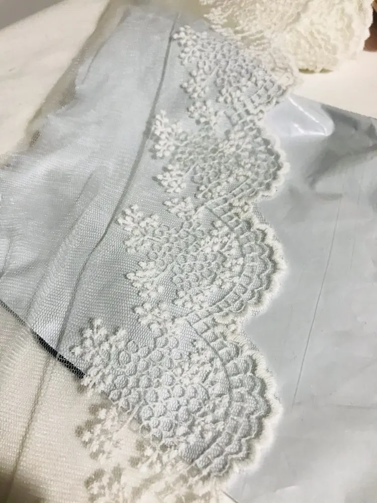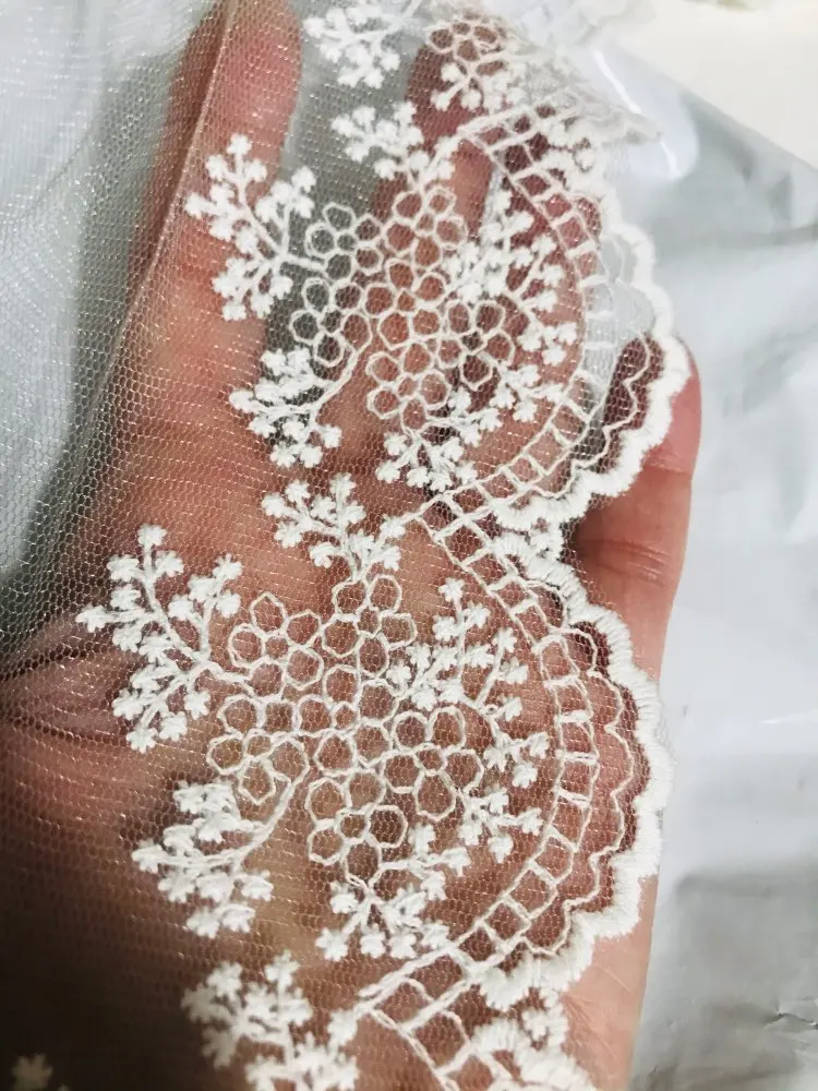 Free Shipping Off-white Gauze Flower Edge Cotton Embroidery Mesh Lace Trim Lace Fabric Dress Sewing DIY 11cm width,5Yds/lot