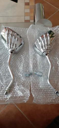 Received the mirrors in a little more than 3 weeks which is quite good. They look very nice. The mirror casing is made of plastic. That's weird to see because you're not used to that, but it has an advantage. Plastic doesn't rust. A good buy.