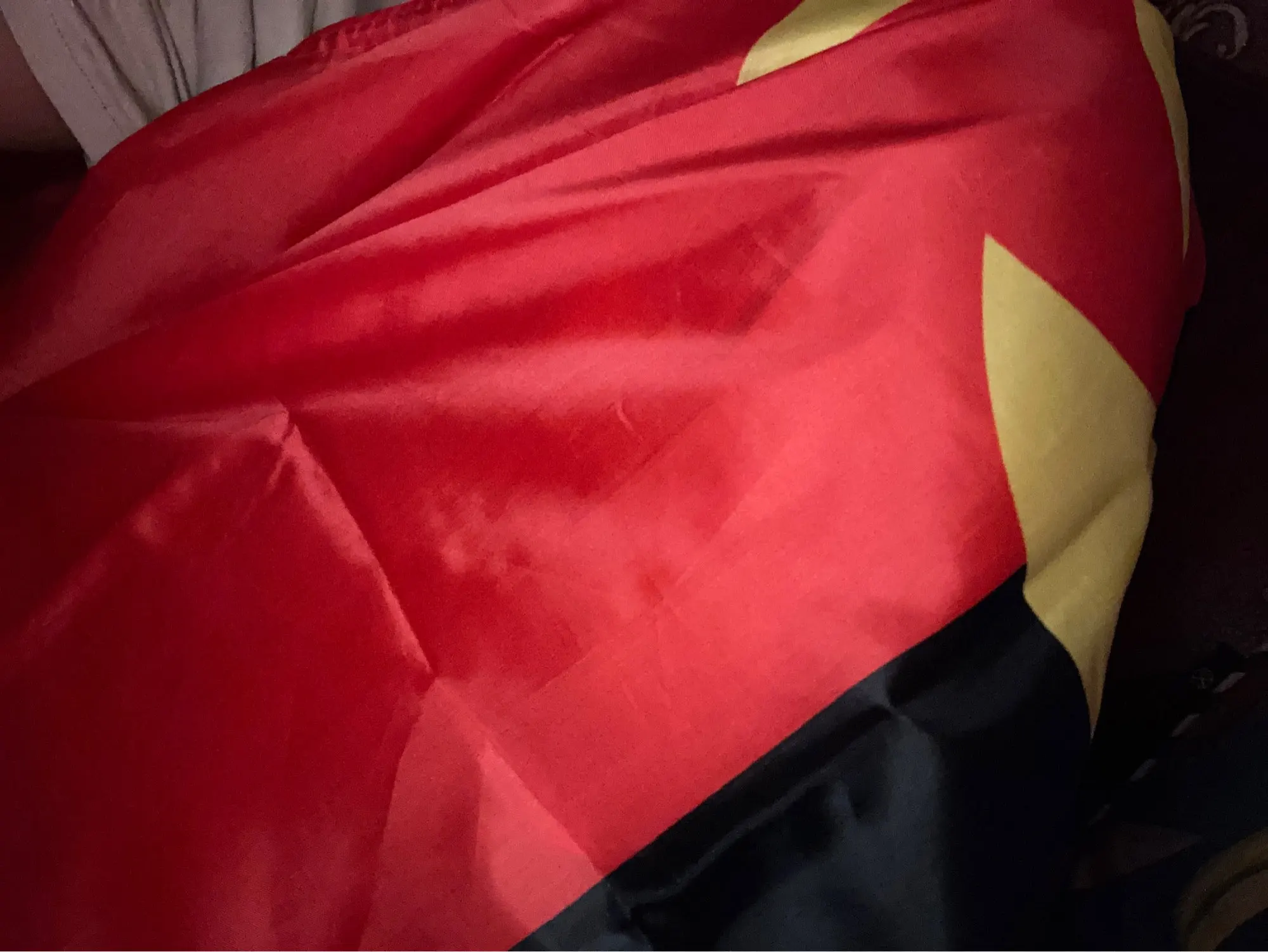 I received the flag 16 days after ordering, in a good state. Very happy happy with this flag, especially considering the low price I paid for it (a bit over 3 euros).