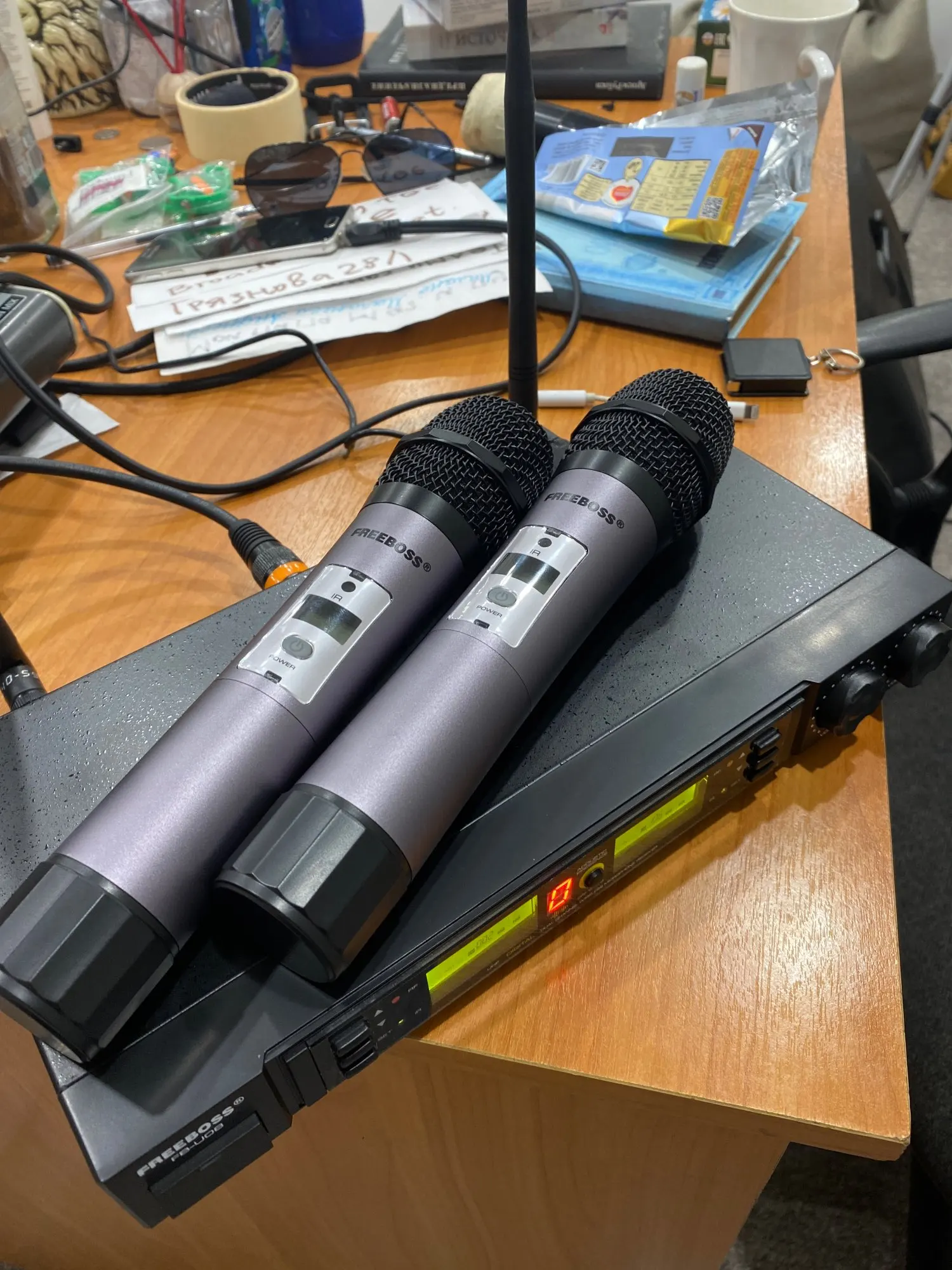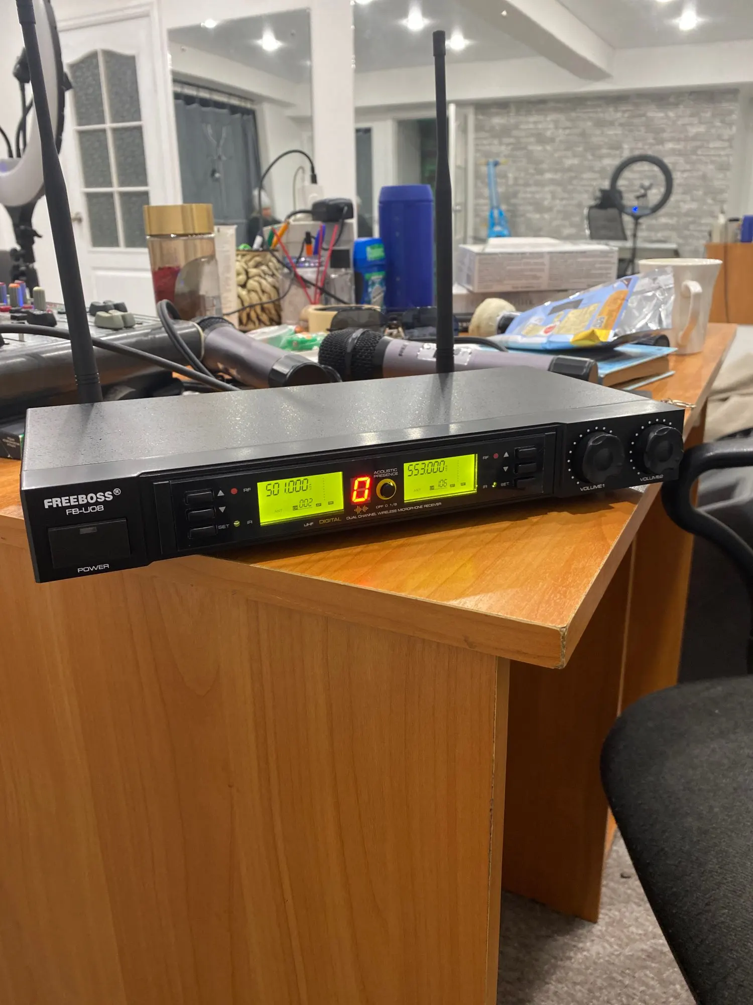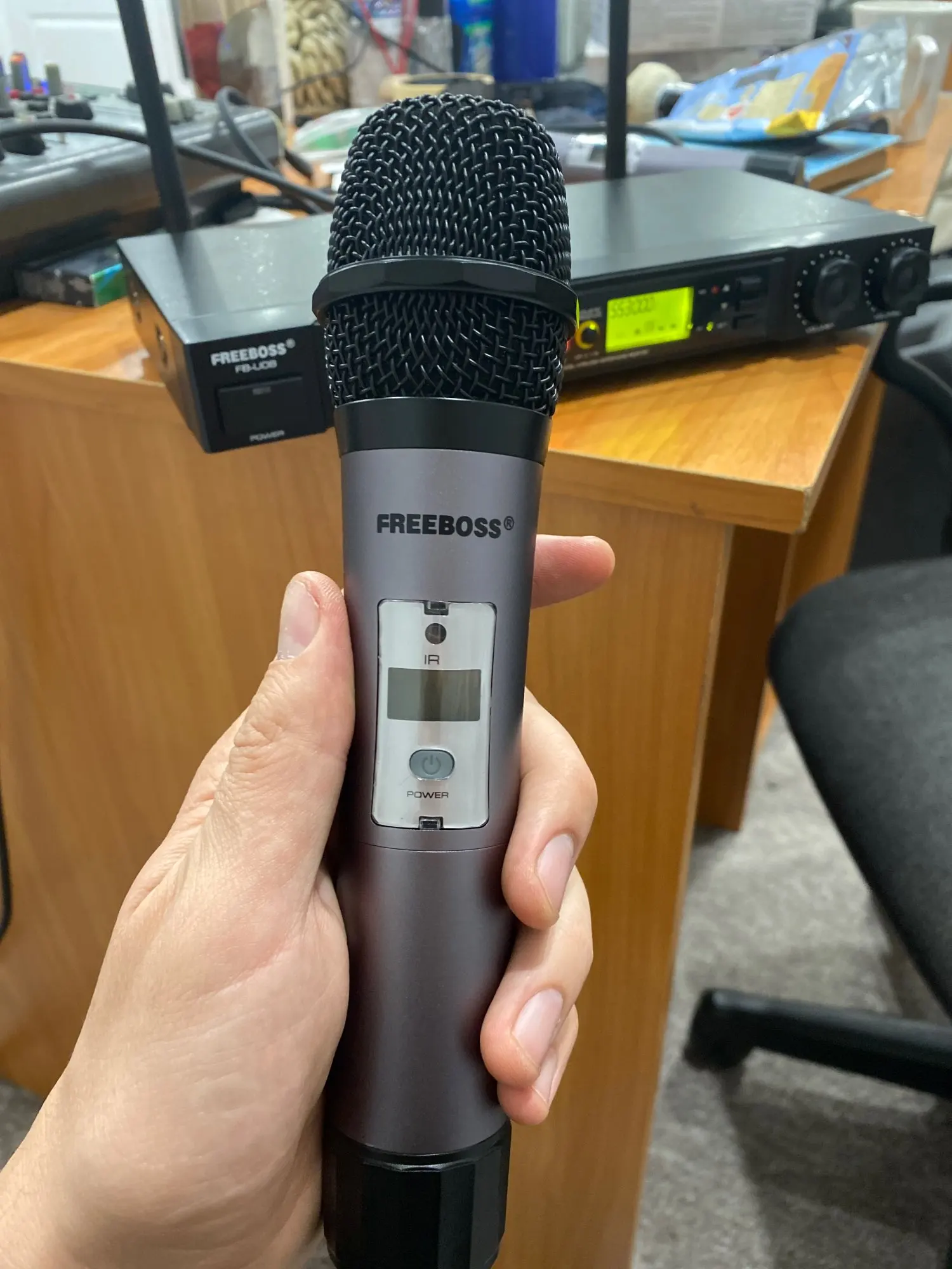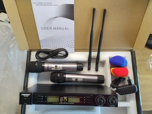 Freeboss FB-U08 2 Way 200 Channels PLL IR UHF Wireless Microphone with 2 Handhelds for Karoke KTV Party UHF Dynamic Microphone