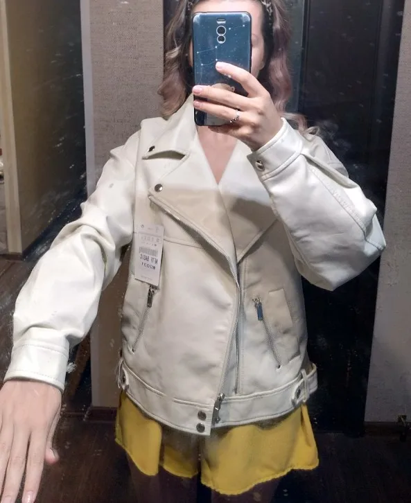 FTLZZ New Autumn Women Faux Leather Jacket Casual BF Loose Soft Pu Motorcycle Punk Leather Coat Female Zipper Rivet Outerwear