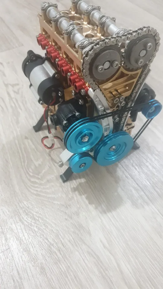 Full Metal Assembled Mini Four-cylinder Inline Gasoline Engine Model Building Kits for Researching Studying Toy Christmas Gift