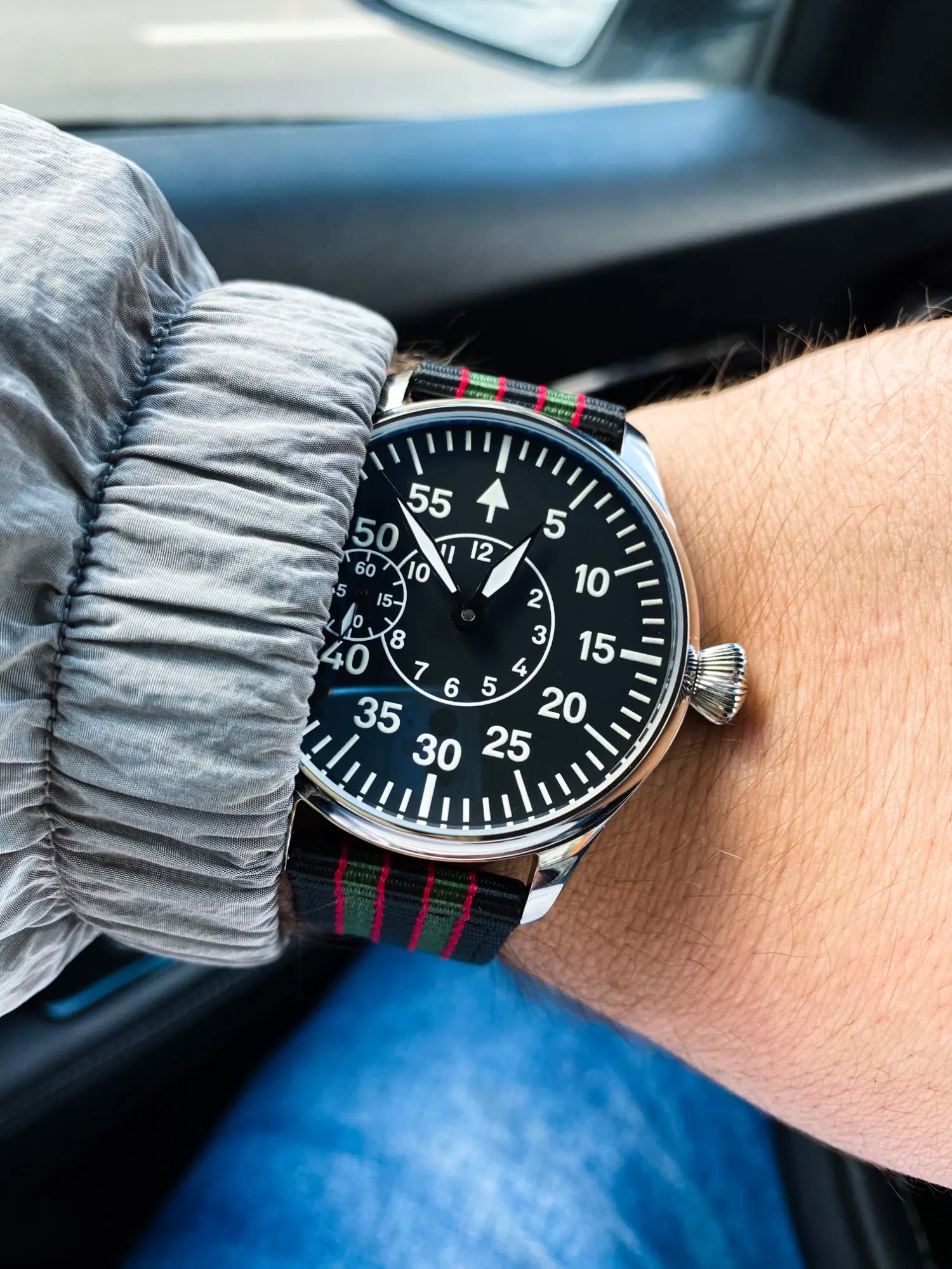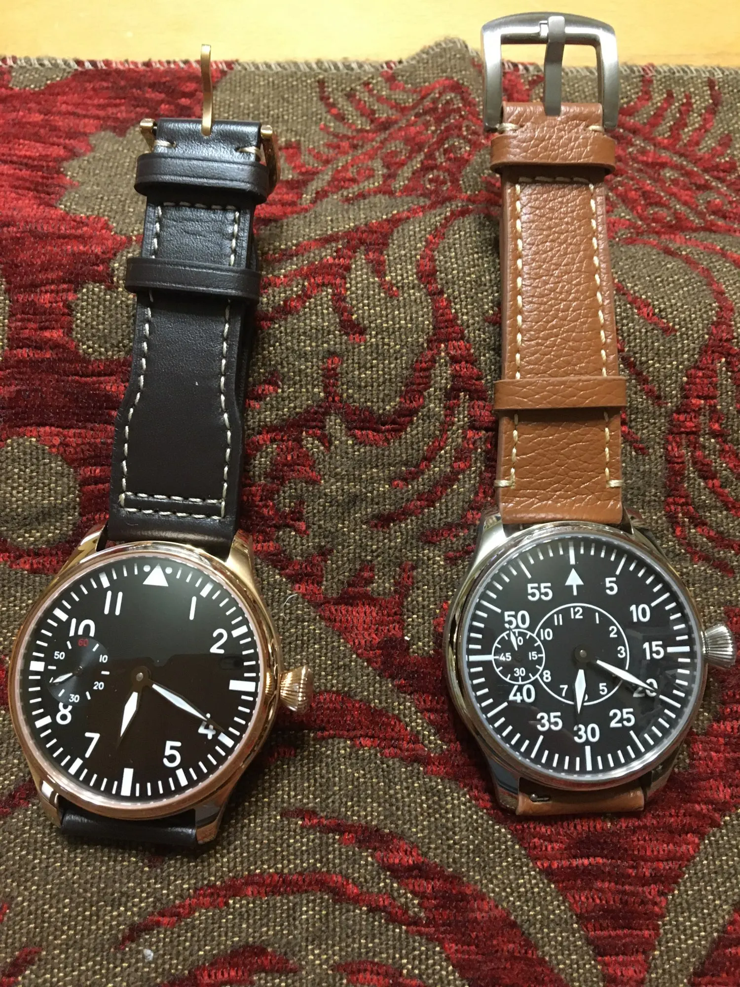 GEERVO No logo pilot Dial Black 44mm Manual mechanical men's Watch ST3600-2 movement 9 o'clock second hand
