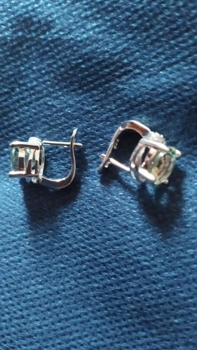 This is the most beautiful jewelry I have ordered on Aliexpress!!! Sparkling clear green-white stones, perfect size - not too big but not too small. Beautiful silver (no allergic reaction so far), closing is easy and high quality. Item arrived within 20 days, which in my experience is very fast. Package suitable for gift. Didn’t communicate with seller, but I will order more from this shop. Beautiful, sophisticated and expensive looking earrings!