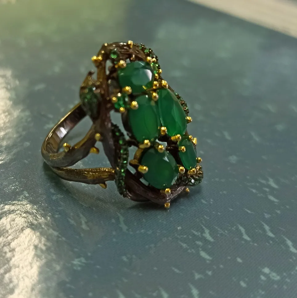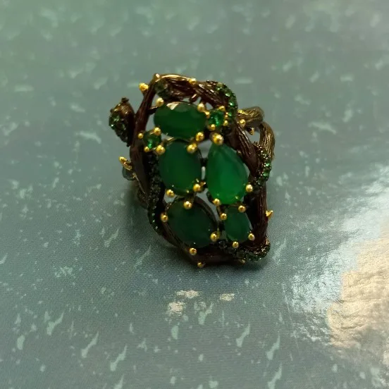 GEM'S BALLET Natural Green Agate Gemstone Ring 925 Sterling Silver Handmade Branch Snake Ring for Women Jewelry