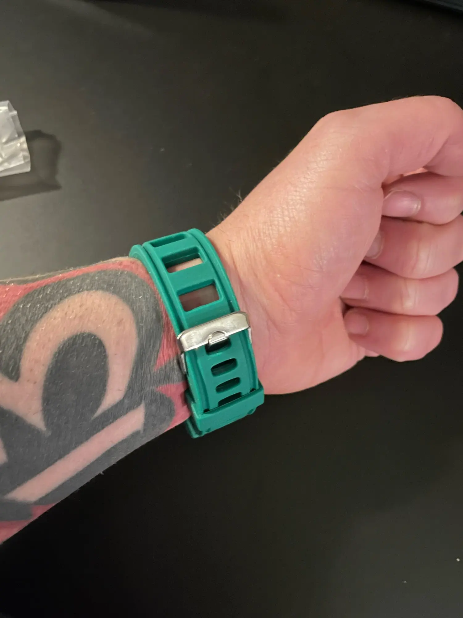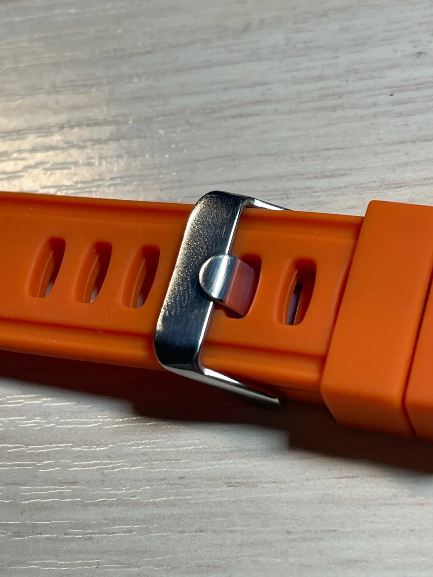 The strap is really comfortable. The hardware is OK. I had to punch another hole on my 17cm wrist.