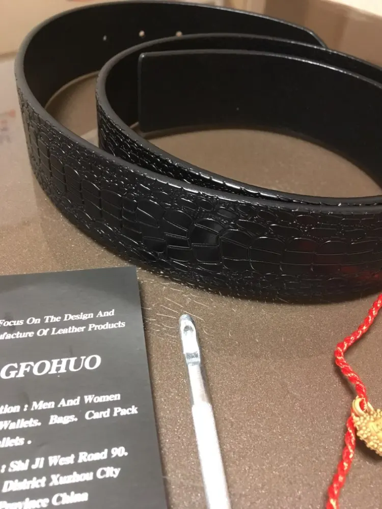 GFOHUO Smooth Buckle Suitable Men No Buckle Male Genuine Leather Crocodile Striped Strap Luxury Belt Without Buckle Wide 3.8cm