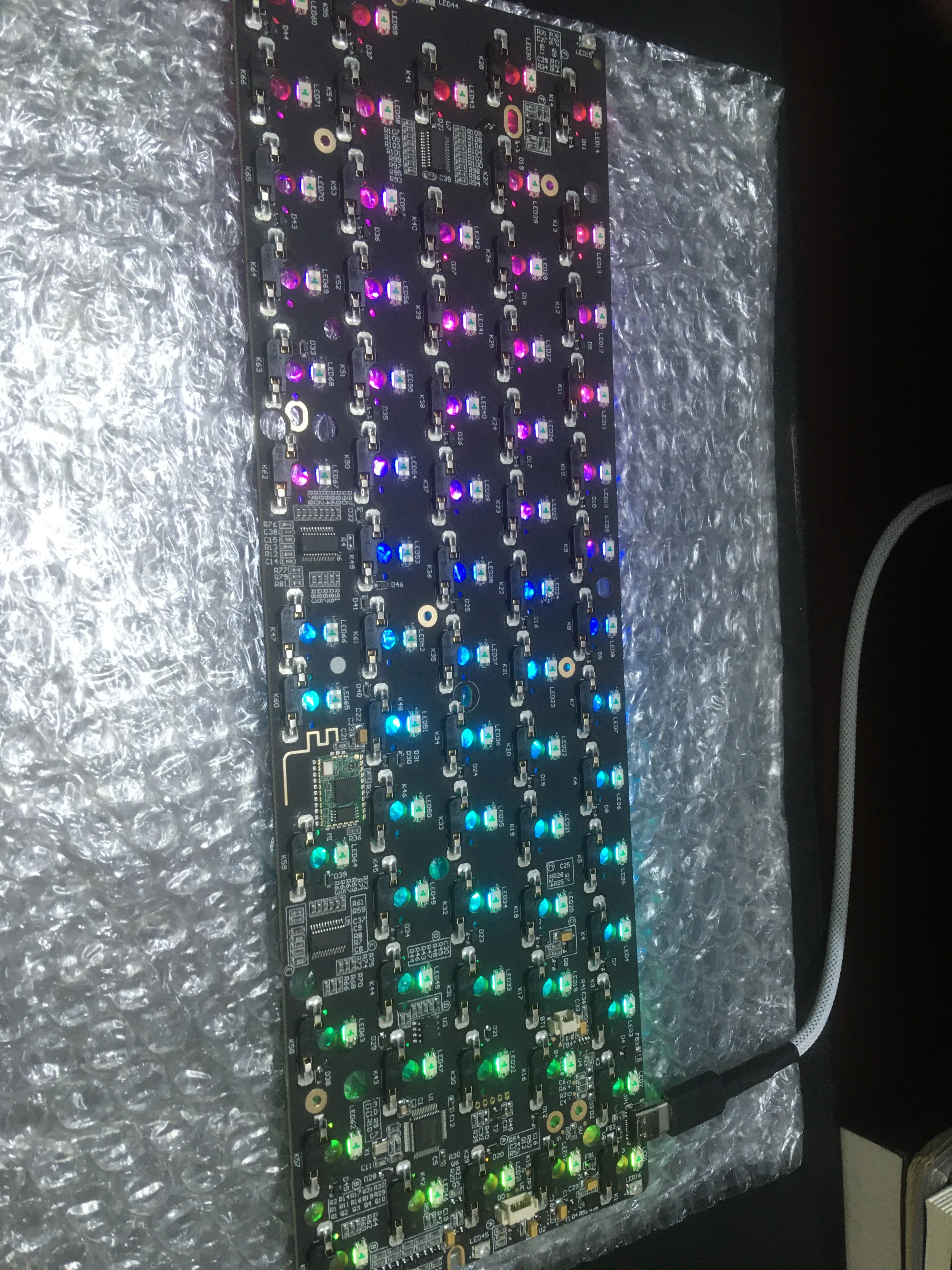 This PCB doesn't work with USB-C. Strangely, it won't even power up. I tried connecting to to my current-generation Macbook Pro using a USB-C cable and using a different cable to connect directly to two different USB-C power adapters, neither of which worked. I was able to get it to work by charging it using an old USB-A iPhone charger using the provided USB-A adapter. Once I got it to take a charge I was able to connect to the Macbook via bluetooth, which does work, but I have to charge it using the old iPhone charger. I actually ordered the same PCB from another vender and had the same problem. It's almost certainly a bug in the firmware but I haven't been able to find a patch.