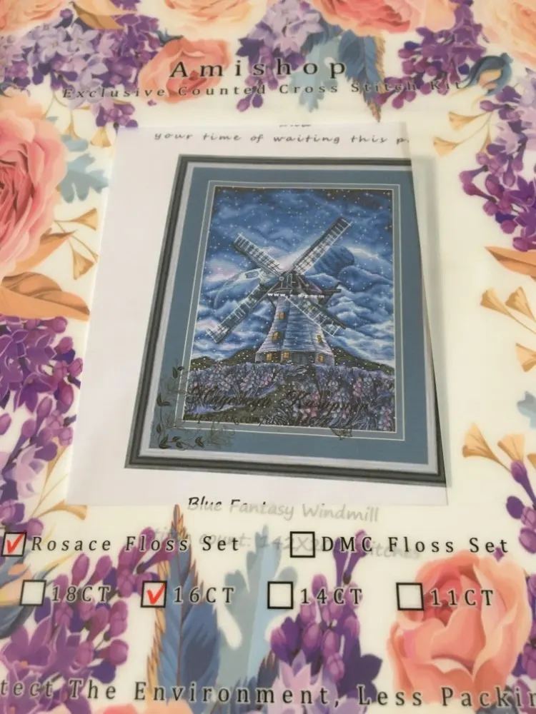 Gold Collection Counted Cross Stitch Kit Blue fantasy windmill romantic Fairy tale world Starry sky 9954