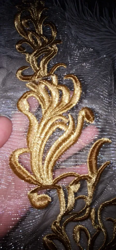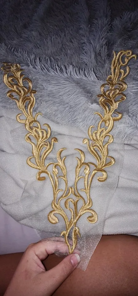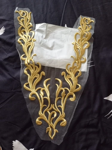 Gold Lace Fabric Embroidered Gown Appliques Flora Collar Mesh Baroque Vintage Sew On Patches For Wedding Decoration Dress DIY