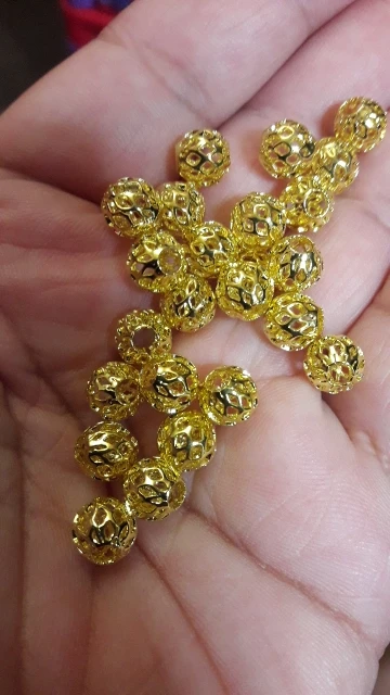 Gold Plated Color Round Hollow Gauze Metal Brass 8mm 10mm Loose Spacer Beads lot for Jewelry Making DIY Crafts