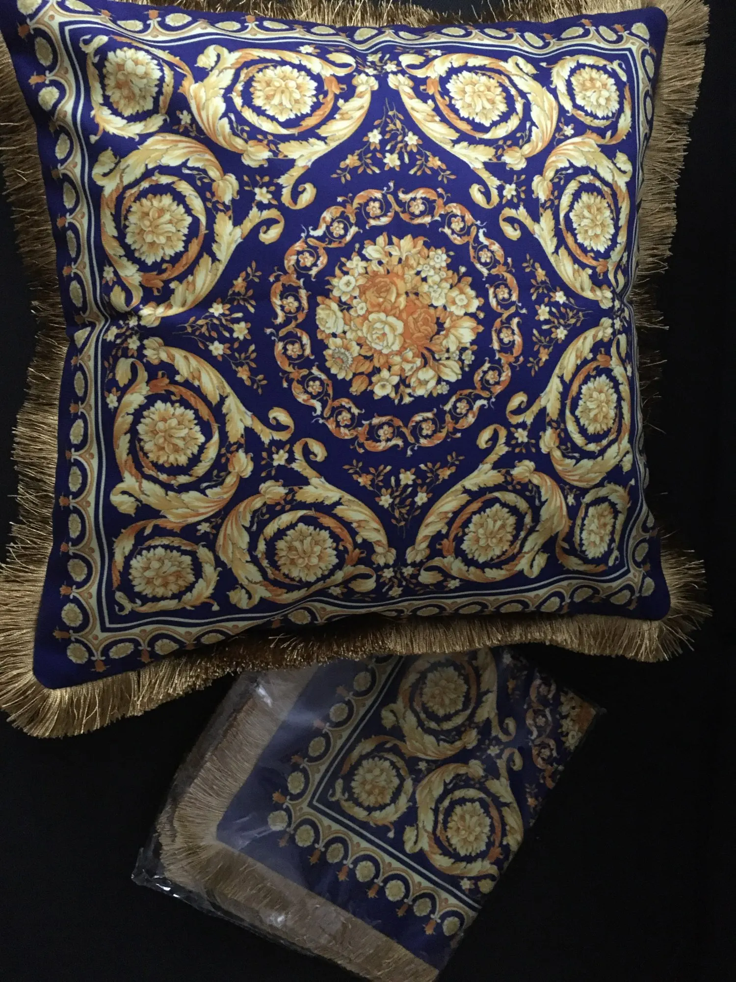 Absolutely beautiful cushions! very good quality. The cushions have shades of royal blue that makes it chic. looks exactly as the picture. I love it, I am going to order more.