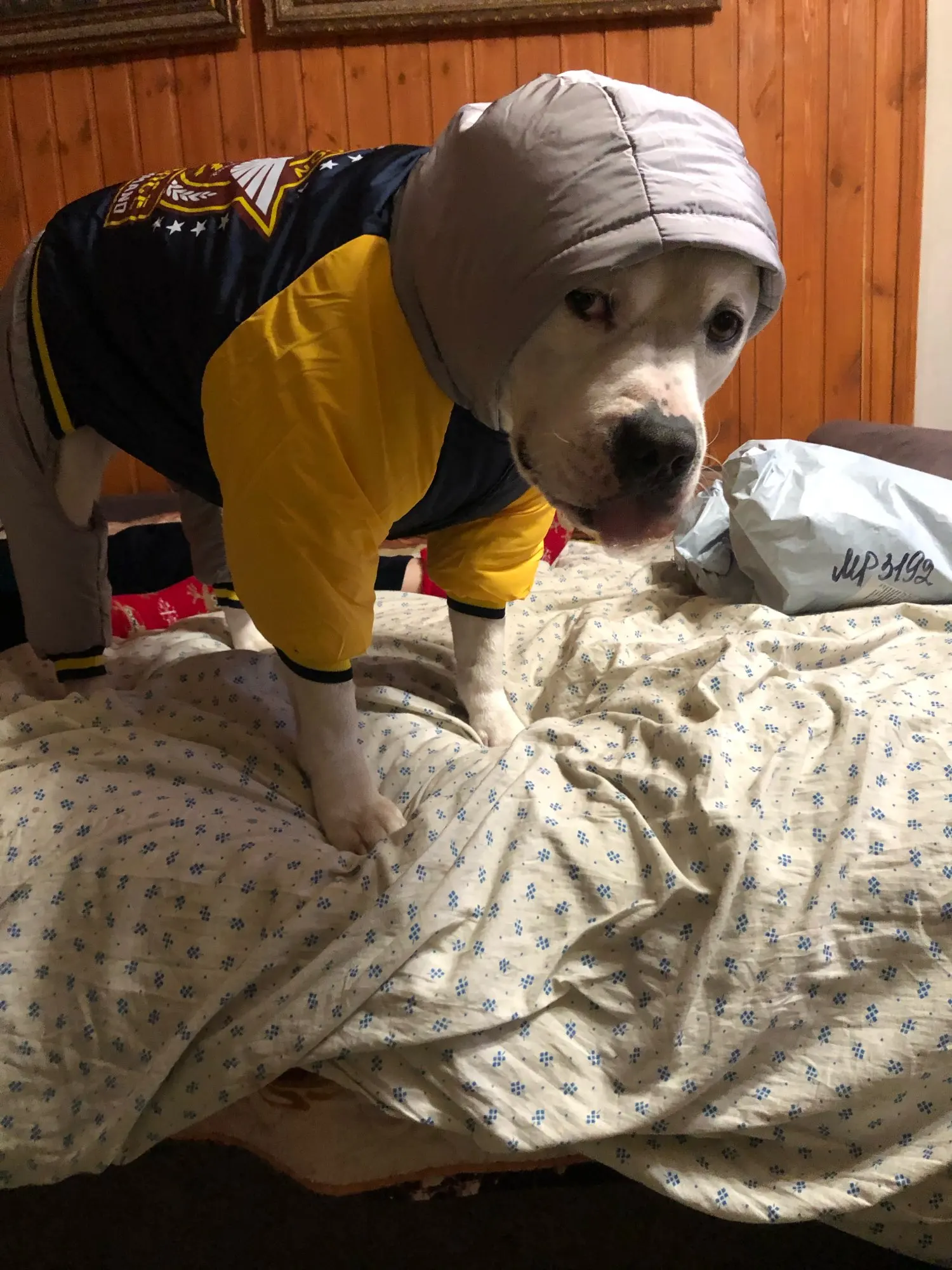 The size is perfect for my dog, with nice design, material and thickness. But came with a spot of stain :(