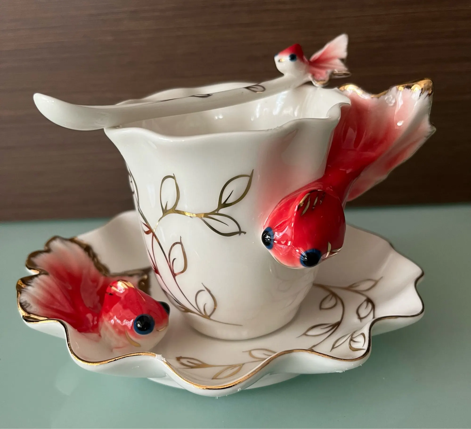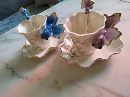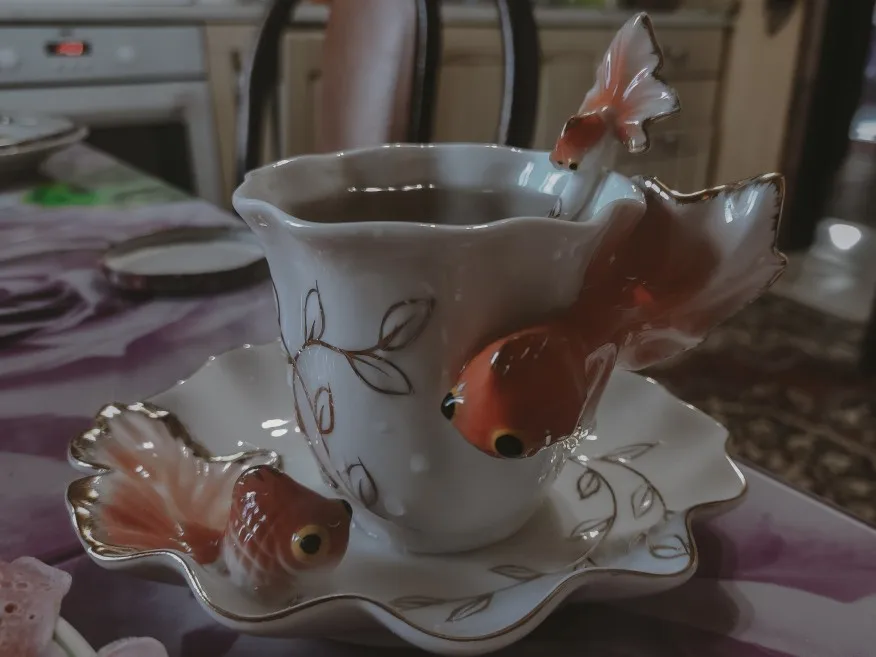Goldfish Enamel Coffee Cup Porcelain Cups suit creative wedding present ceramic cup European bone china cup