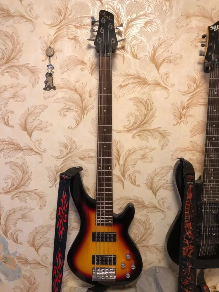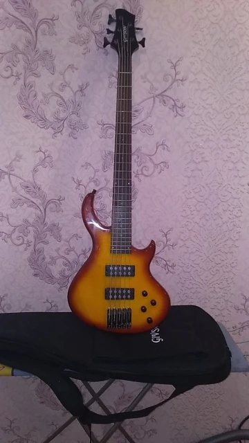 good 5 string electric bass guitar alder wood body sunburst color bass guitarra free gig bag