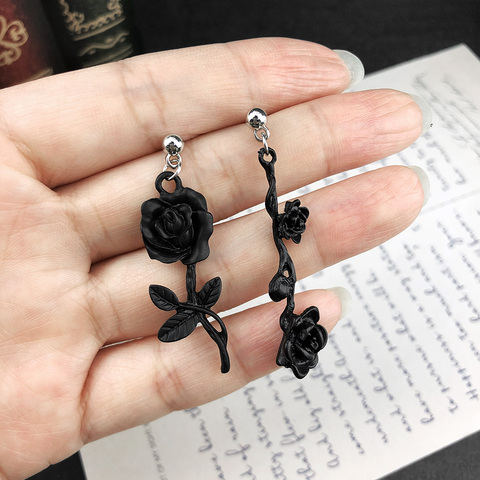 Gothic Jewelry Ornament Dark Goth Black Briar Rose Ear Stud Unglazed Black Club Rock Hip-Hop Asymmetry Dangle Earring