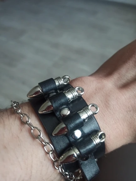 Gothic Punk Unique Bullet Shape Chain Link Rock Cool Cuff Leather Bracelet Bangle S061