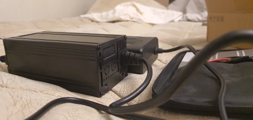 Item arrived fast! No tax to pay ;) Seems like it is working fine. Still have to try it on a completely discharged wheel Strange thing is: first time you plug it in, the ventilator starts, even when no wheel is attached. It stops after a few seconds.