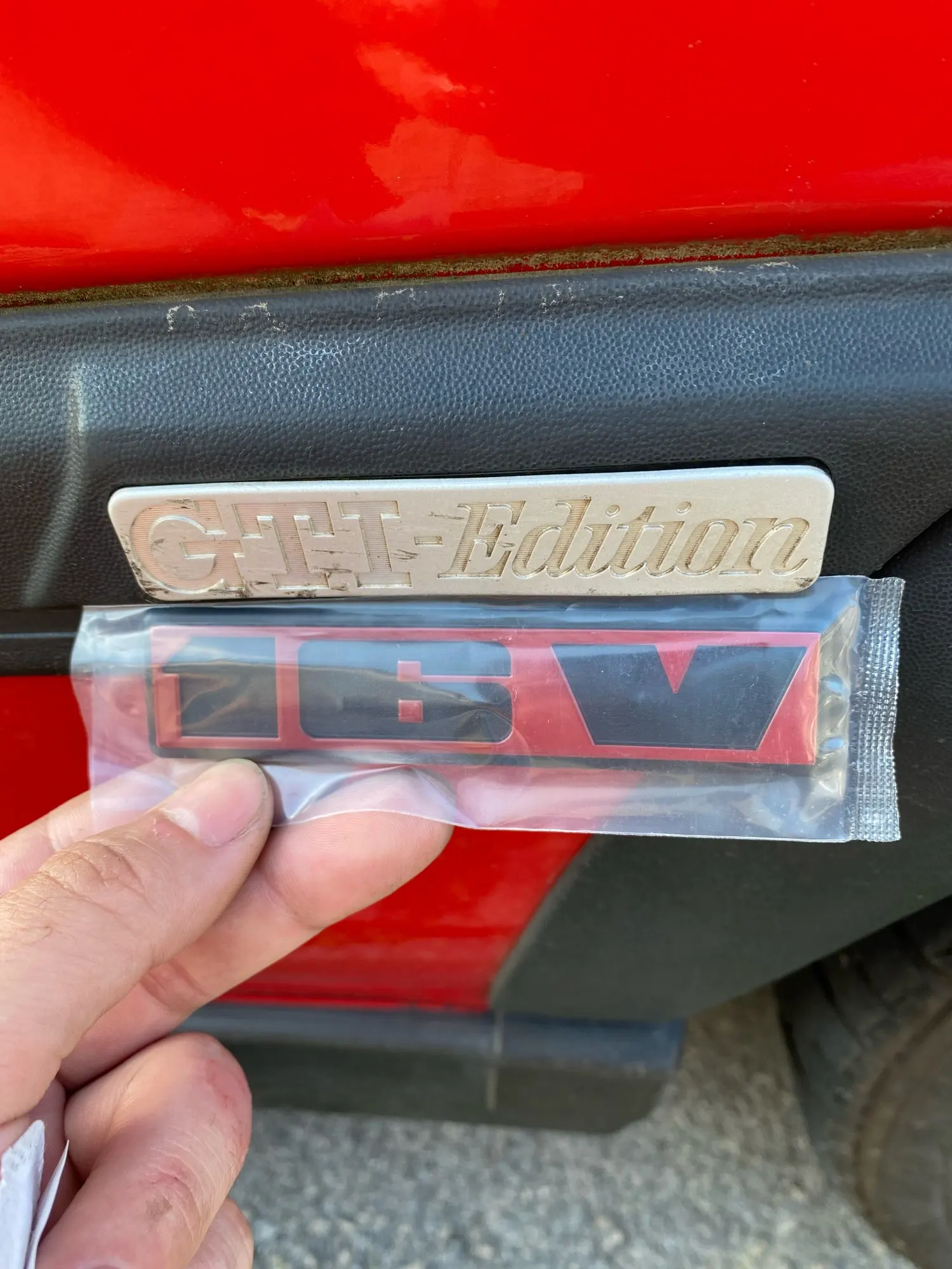it arrived yesterday looks good was fitted to car today looks good nice a firm adhesive sticky back would highly recommend it.