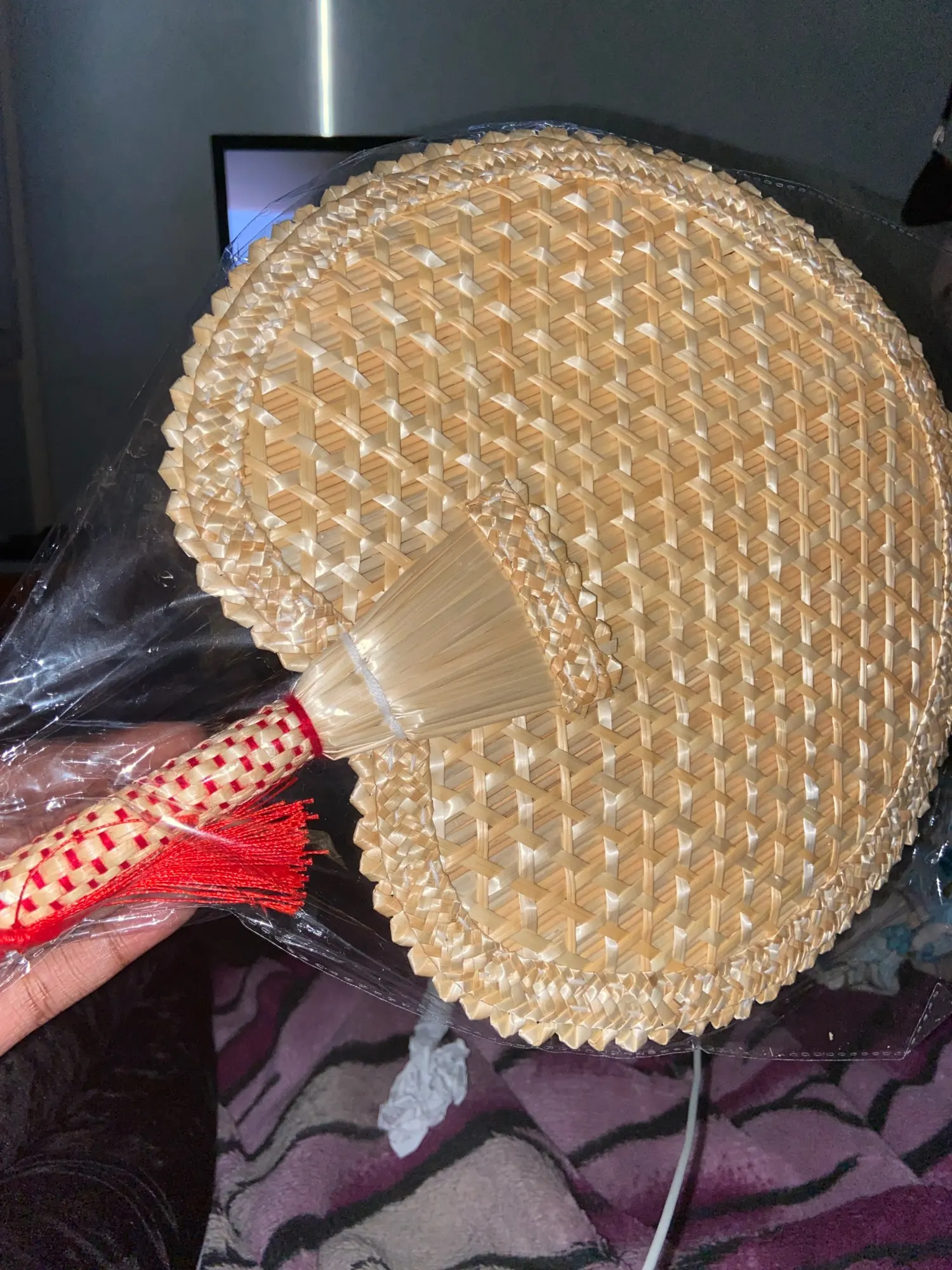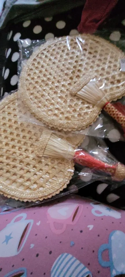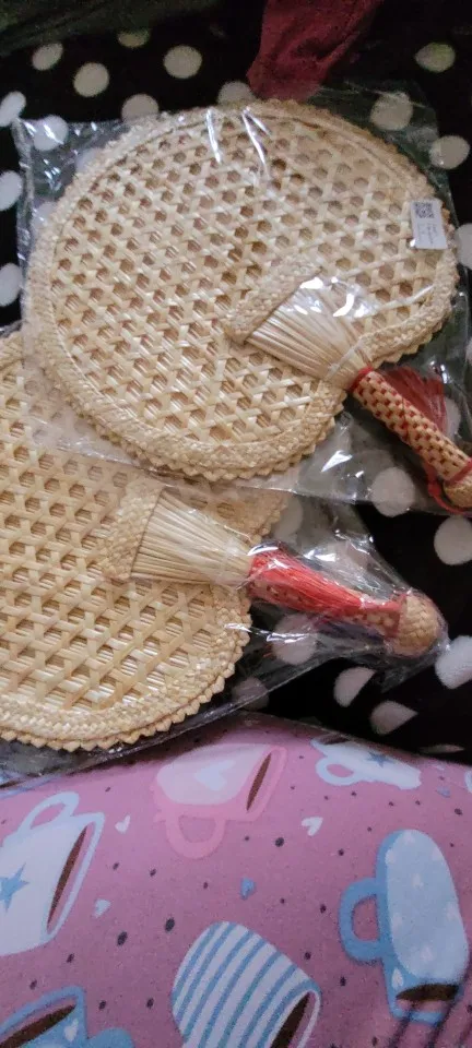 Hand-Woven Woven Straw Hand Fan Old Summer Natural Environmentally Friendly Hand-Woven Fan Decorative Round Fan